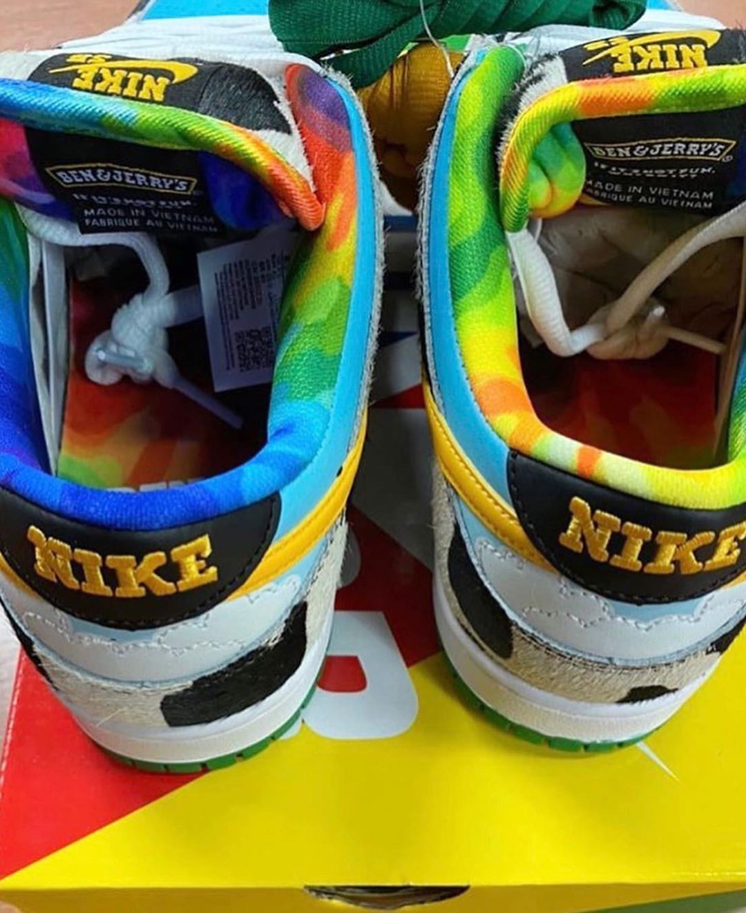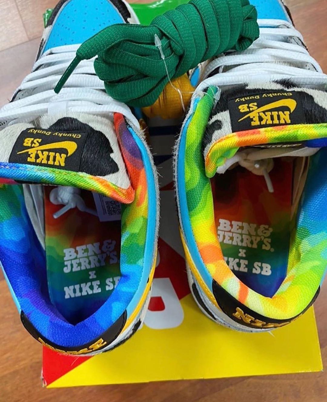 以足弓对称的炫彩图案,装饰 Ben & Jerry's x Nike SB 的 Logo,是 Nike Dunk SB 惯有的在鞋垫上大做花活的风格。