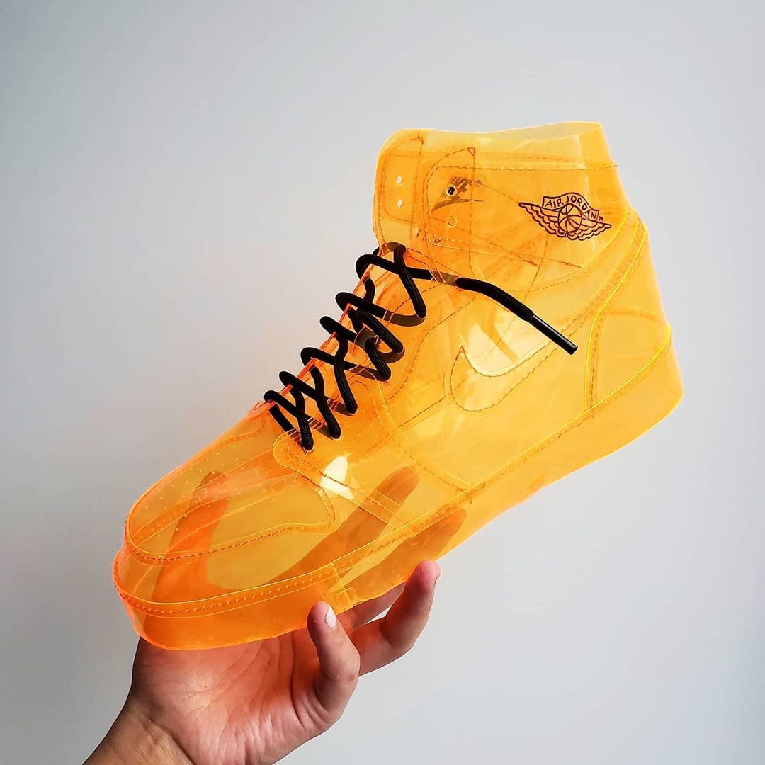 她以橙色半透明橡胶材质,拼接构成 Air Jordan 1 的外形轮廓。