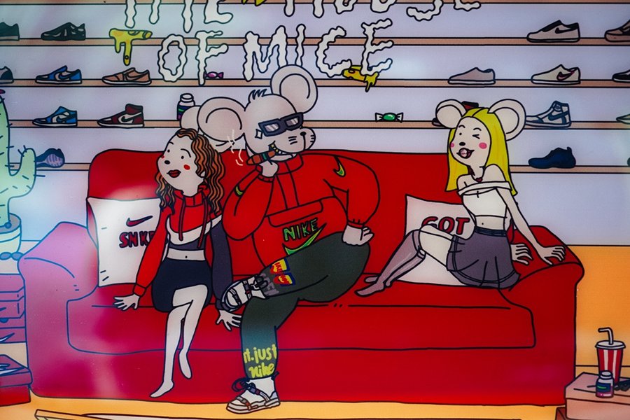 图案展现了老鼠的潮流生活场景,想必能让广大潮人倍感亲切。