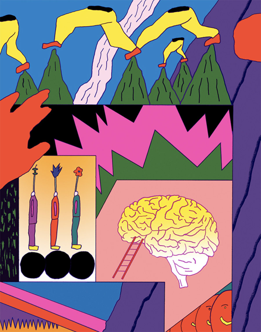 作品呈现出奇趣的怪诞风格,变形裁切扭曲的身体、鲜明的色彩,希望通过创作代替语言,来分享个人经历及对事物的深刻体会。