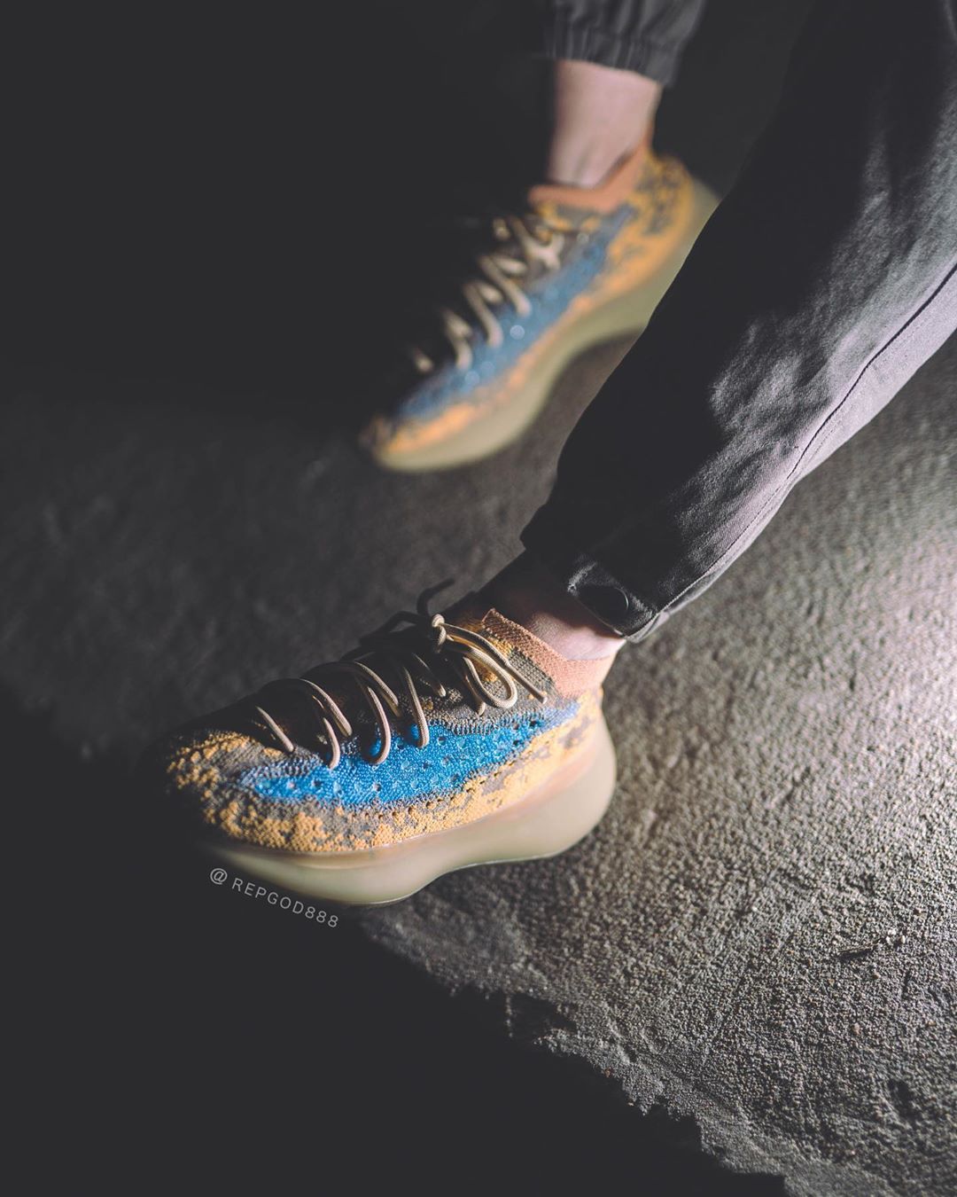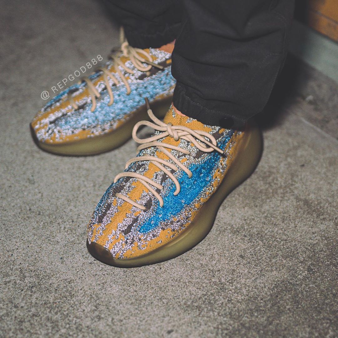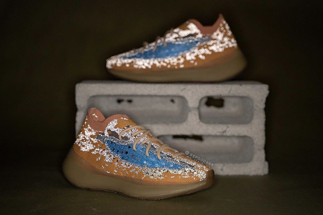 在市售了两双配色之后,上月底再次曝出一双满天星版本的全新 Yeezy Boost 380 “Blue Oat Reflective”。