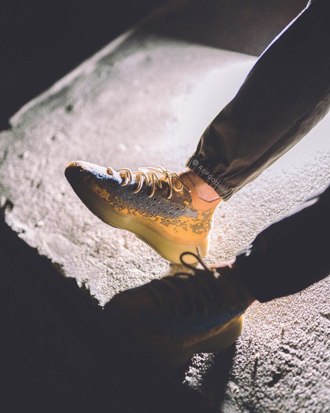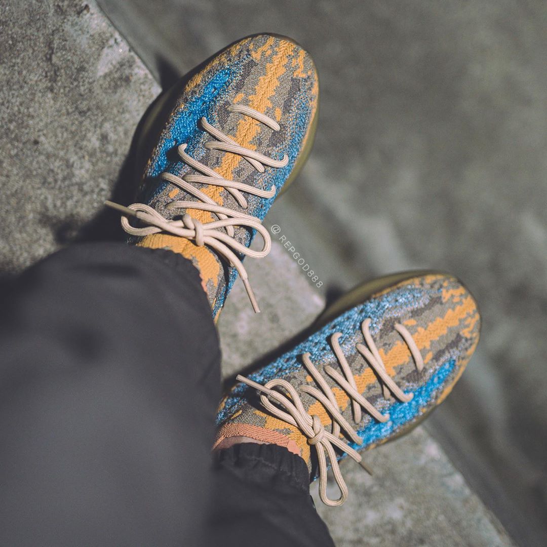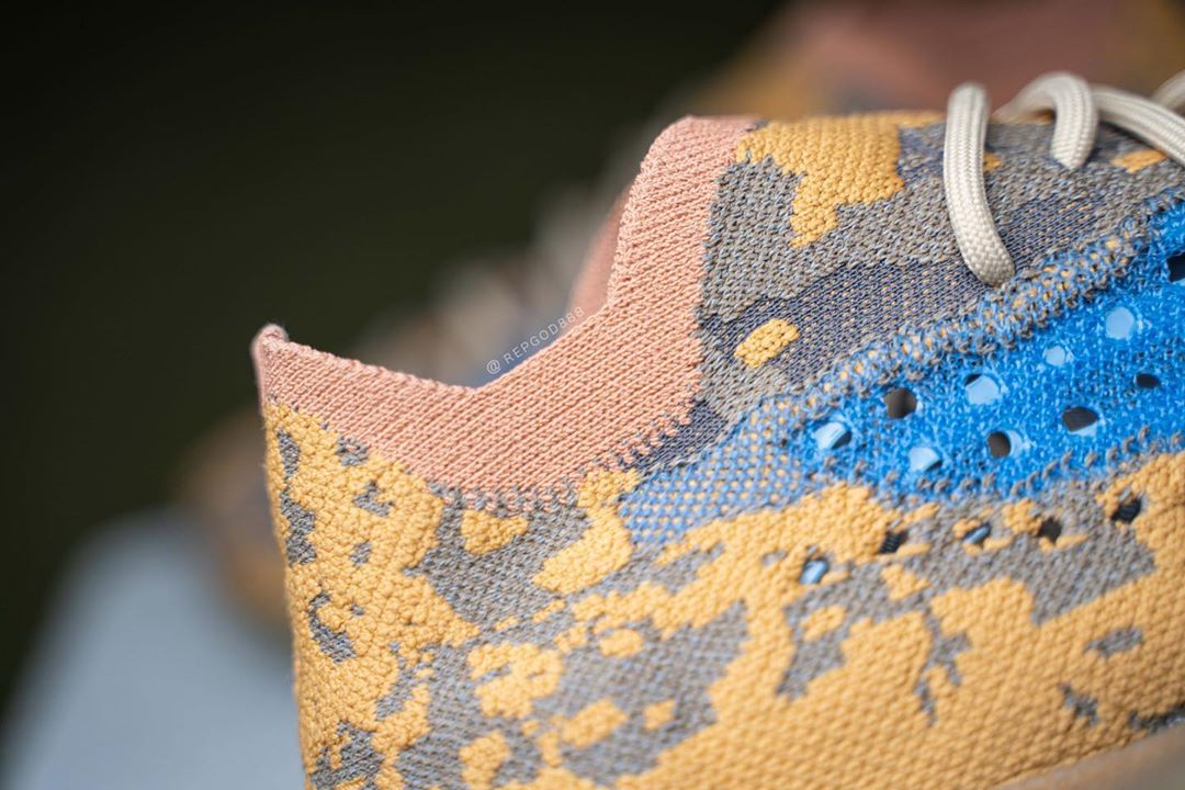 相比之前市售的两个配色,这双鞋的颜值更让人一言难尽,编织鞋面使用黄色与灰色组合,搭配蓝色的侧透网眼,整体色彩的搭配只能用奇特形容。