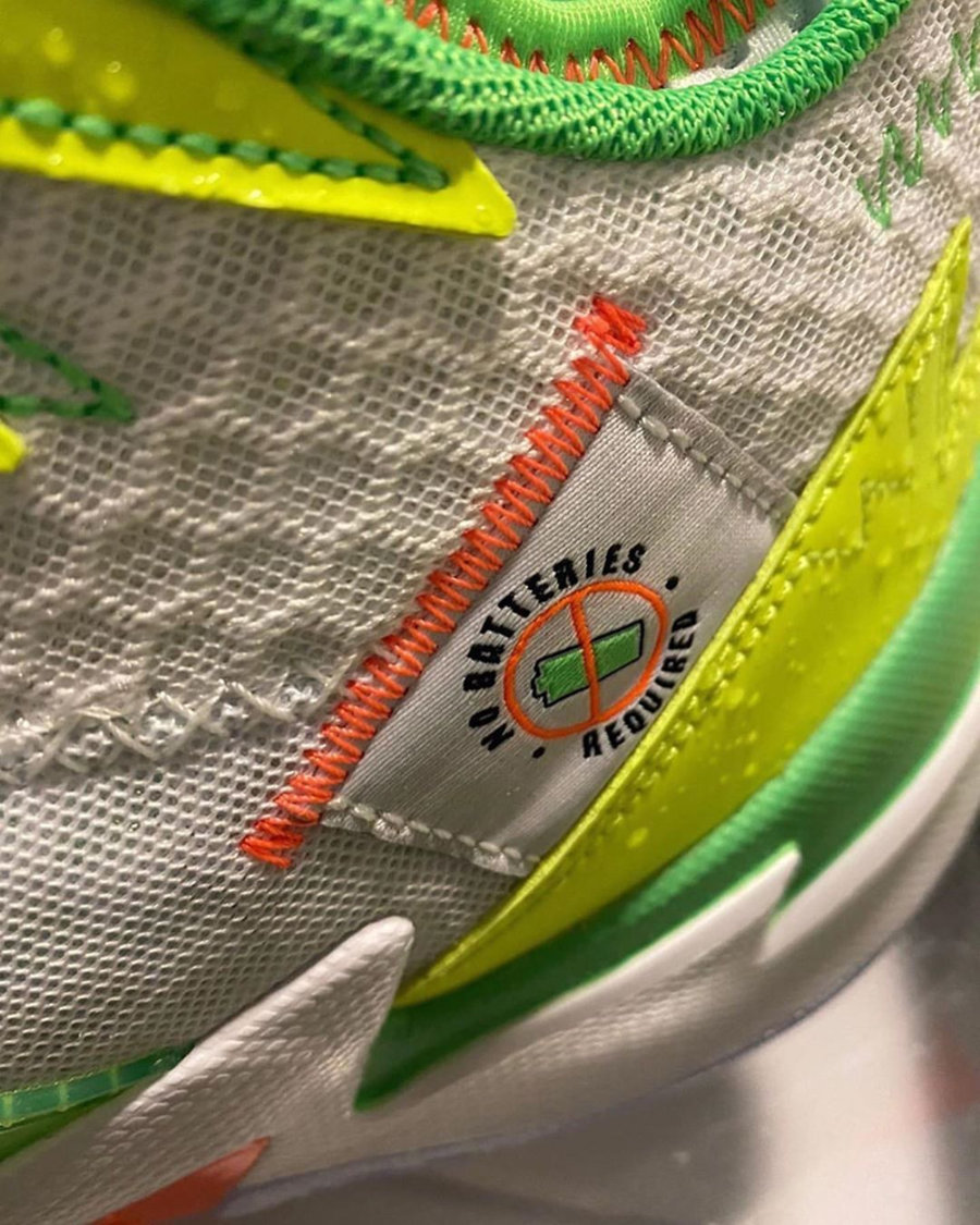 细节处点缀 No Batteries Required 字样,鞋垫也有喷水图案。