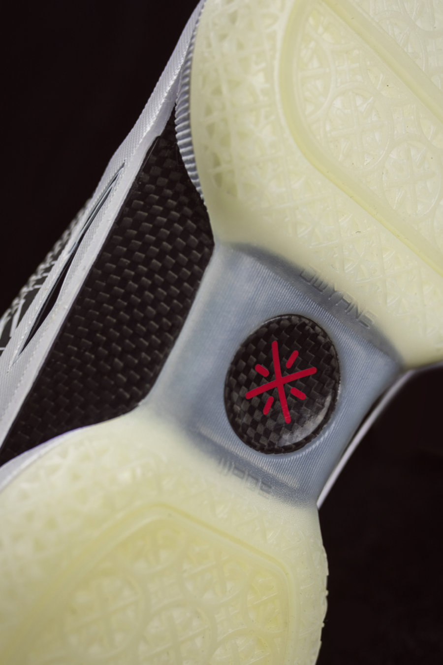 多处金色细节点缀,鞋底的大面积立体碳板更是韦德之道 1 引以为傲的配置。
