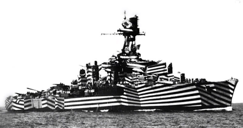 这种黑白相间的图案起源于一战的战舰涂装。涂上这样的图案能让对手无法估计移动方向与速度。
