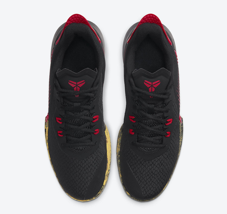 鞋面采用蛇纹细节装饰,侧身 Swoosh Logo 带有凸起的蛇纹细节。同时鞋舌以及后跟位置点缀标志性科比个人 Logo。