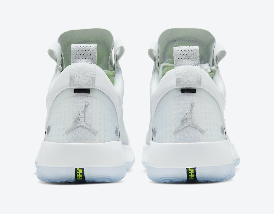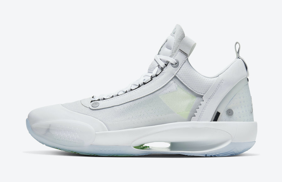 其中 Air Jordan 34 Low “Crispy” 整体以纯白色为主调,鞋面上搭配银色与黑色的细节设计。