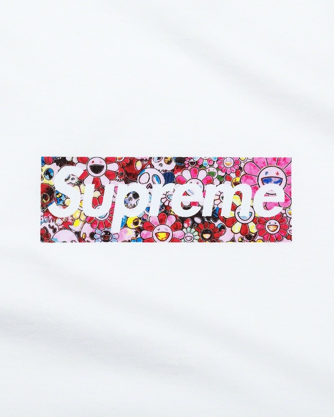 此次的 Box Logo 采用村上隆招牌的 KaiKai KiKi Flower 及 Skulls 图案为底,结合白色 Supreme 文字呈现。