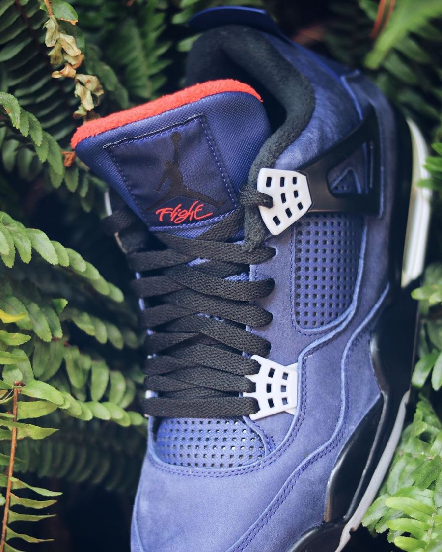 深邃午夜蓝注入细腻皮革,搭配珊瑚粉鞋舌与灰色篮网造型鞋带扣,与阿姆 Air Jordan 4 的视觉元素一脉相传。