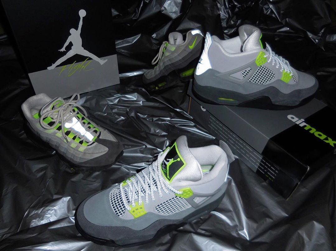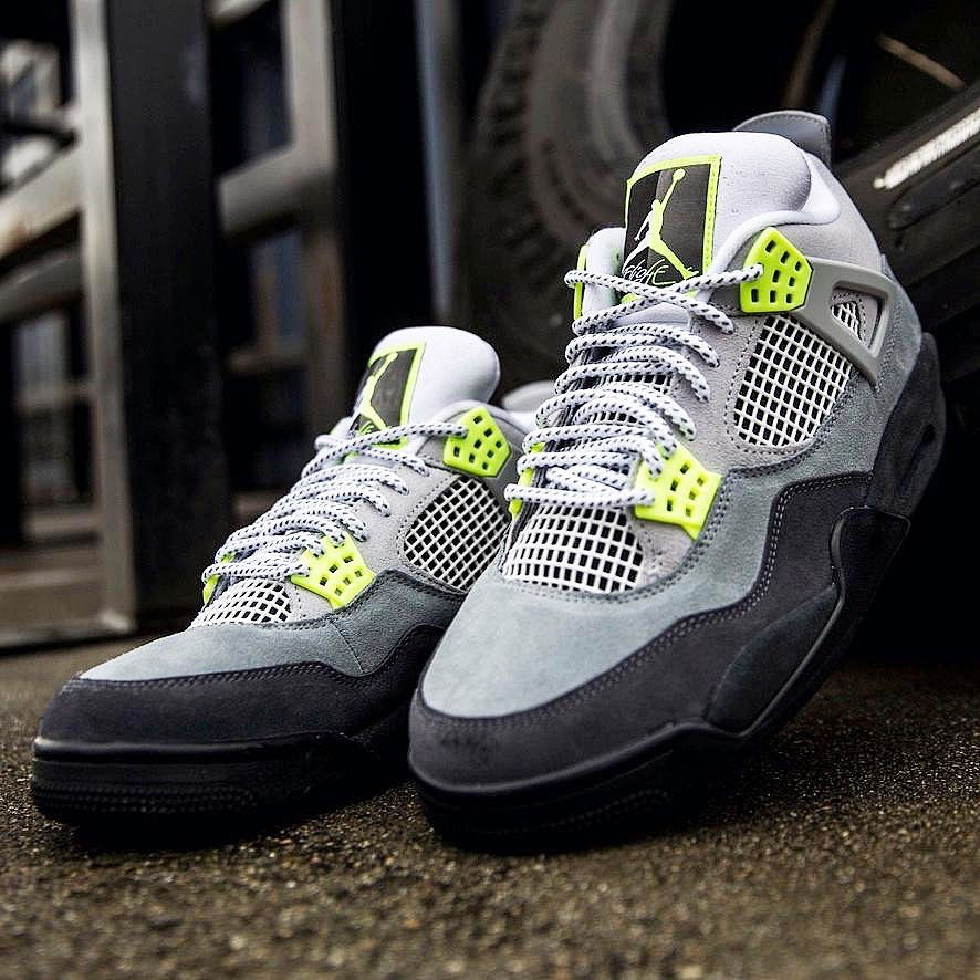 Air Max 95 最经典的 Neon 灰绿渐变注入 Air Jordan 4,与我们印象中 AJ4 纯色装扮大相径庭。