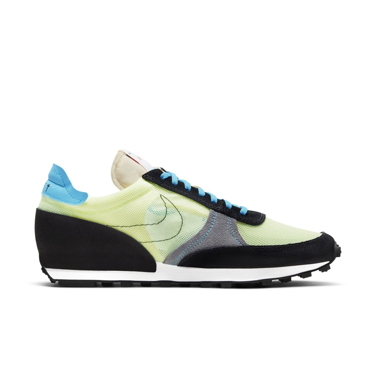 而在另外一款配色中,浅荧光黄色成为鞋身主调,搭配黑色组合以及蓝色细节,完善整双鞋的设计。