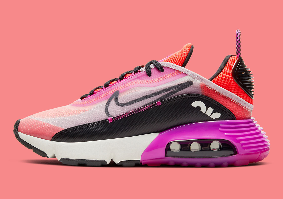 Air Max 2090 鞋型致敬 Air Max 90,延续经典的中底框架设计,并将气垫大幅增容,兼具稳定与舒适脚感。