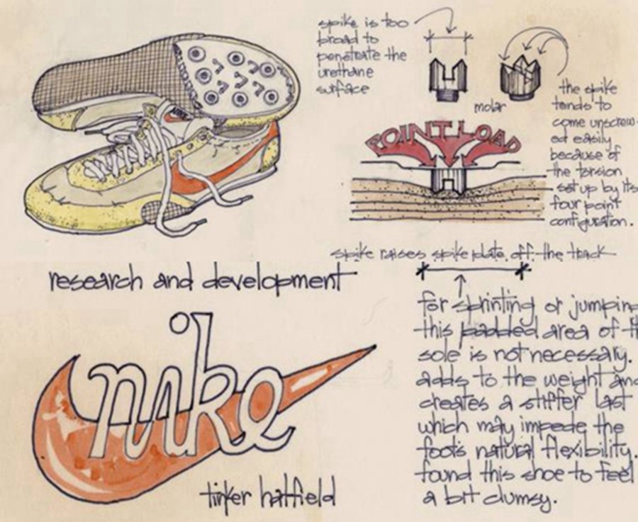 “那会儿我以为自己的设计很棒,结果实际上,运动员经常会被新设计的鞋钉绊倒”,Tinker 坦言,“但其实那时我已经开始尝试学着,为运动员解决问题而设计鞋子了”