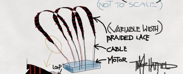 但不仅引起 Tinker 深思,“能不能做一双,能解决球鞋长时间勒脚,可以自动调节鞋带为你放松的球鞋?”