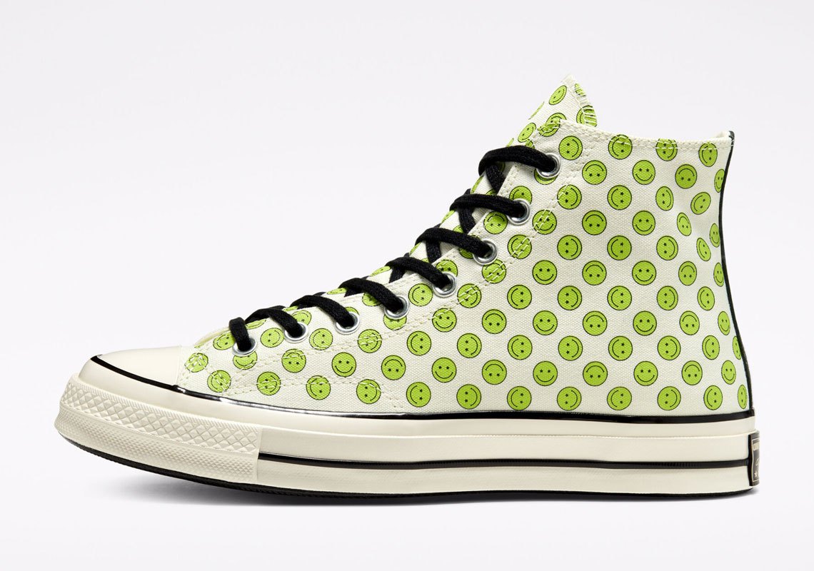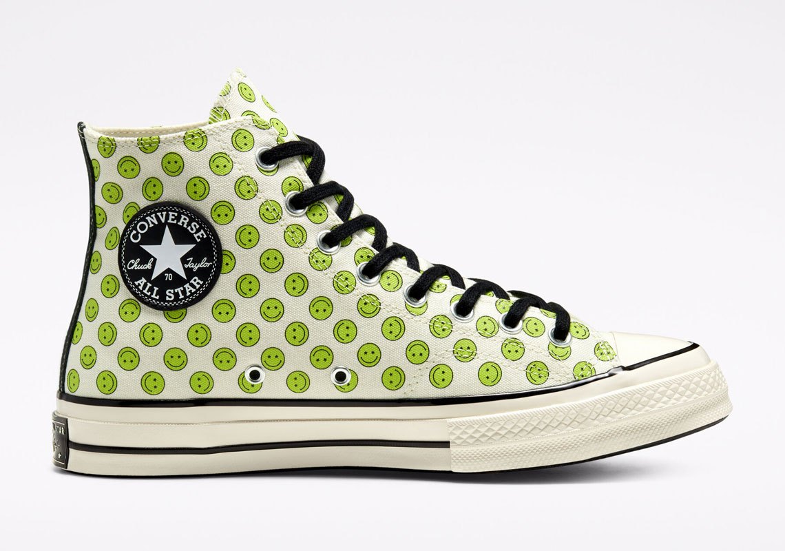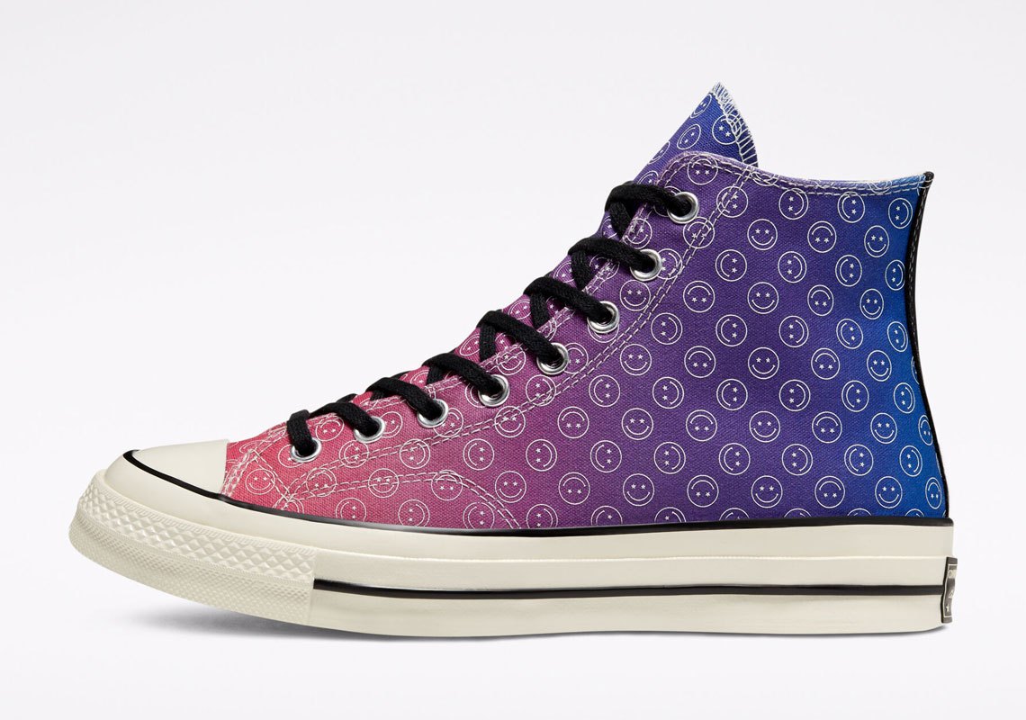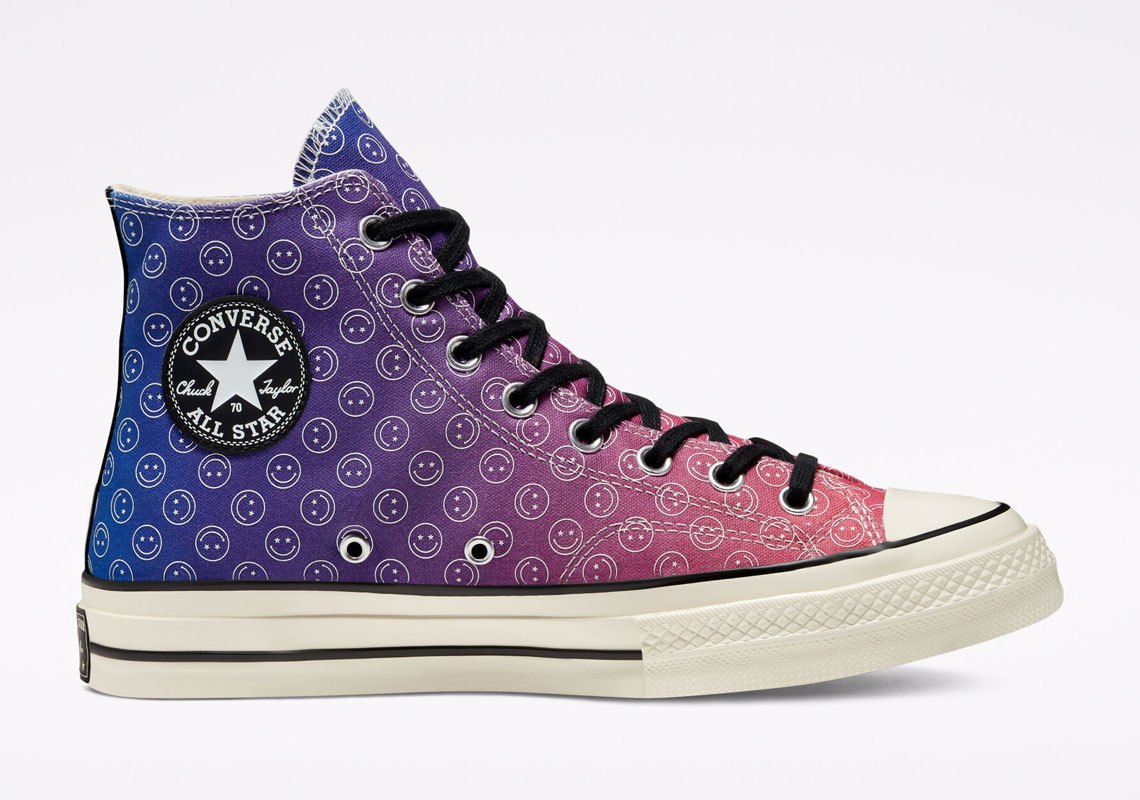 作为 Converse 阵营中的明星鞋款,Chuck 70 的火爆人气早已毋庸置疑。 就在今早,两款辨识度极高的新配色官图曝光,一起看看吧! 一款配色为蓝、粉渐变装扮,另一款则为素雅米黄色装扮。 最抢眼的造型当属鞋身满印的笑脸 Logo,视觉效果十分洗脑。 目前两款配色均已在海外正式发售,感兴趣的朋友可以搜索下方货号入手! Converse Chuck 70 “Happy Camper” 货号:167635C / 167637C 发售价格:$85 美元