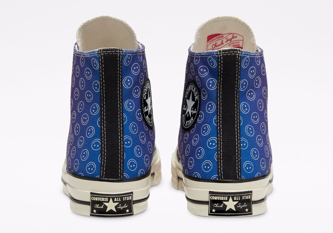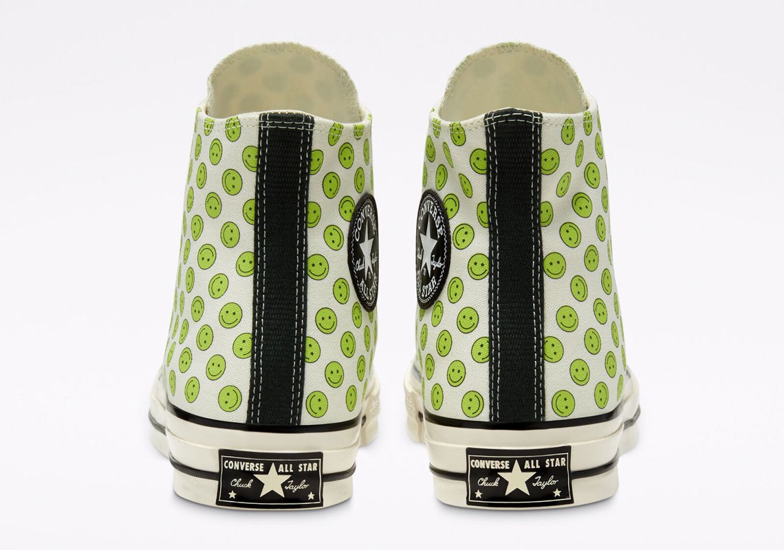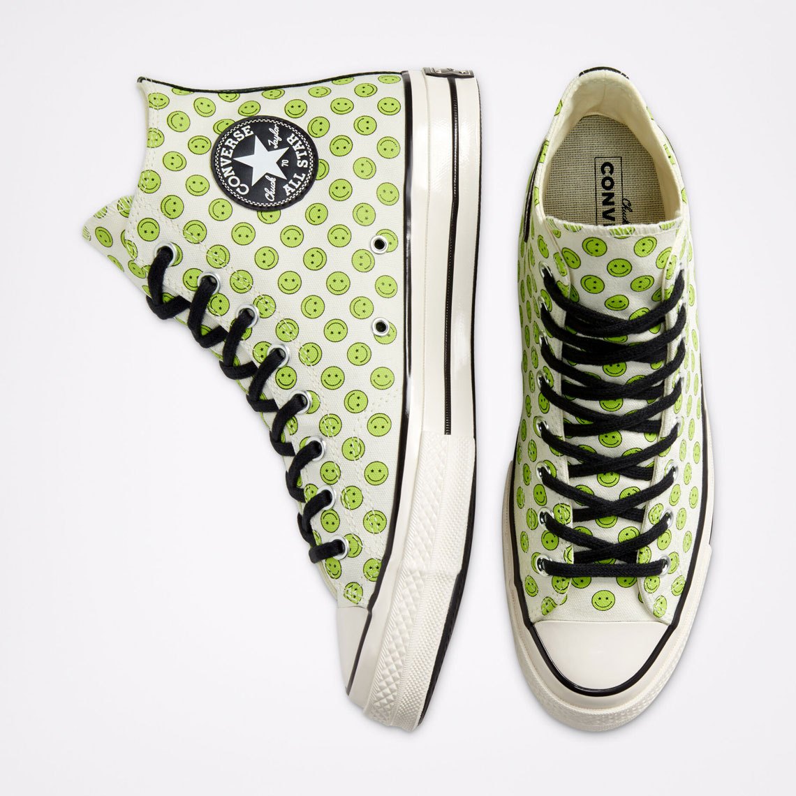 作为 Converse 阵营中的明星鞋款,Chuck 70 的火爆人气早已毋庸置疑。 就在今早,两款辨识度极高的新配色官图曝光,一起看看吧! 一款配色为蓝、粉渐变装扮,另一款则为素雅米黄色装扮。 最抢眼的造型当属鞋身满印的笑脸 Logo,视觉效果十分洗脑。 目前两款配色均已在海外正式发售,感兴趣的朋友可以搜索下方货号入手! Converse Chuck 70 “Happy Camper” 货号:167635C / 167637C 发售价格:$85 美元