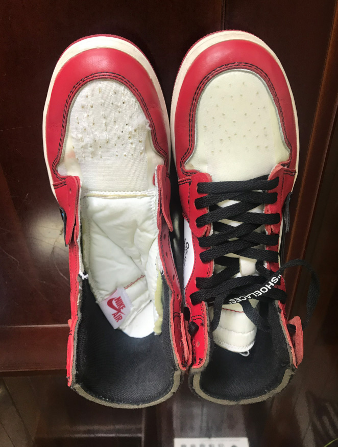 另外一位近期更惨的球鞋玩家,当属这位把 OFF-WHITE x Air Jordan 1 “Chicago” 送去洗鞋店的朋友。
