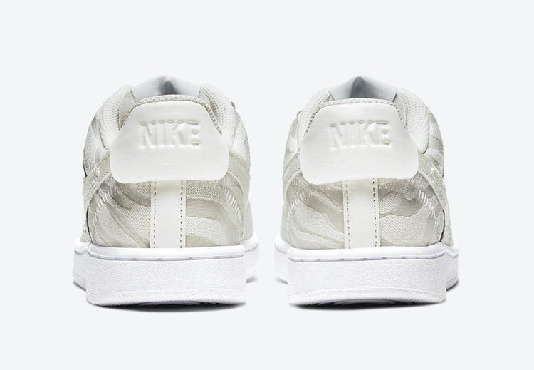 整双鞋采用一袭米白色装扮鞋身,带来满满的复古风格。最大亮点当属鞋面带有独特虎纹装扮,同时侧身叠搭造型的 Swoosh Logo 同样吸睛效果十足。