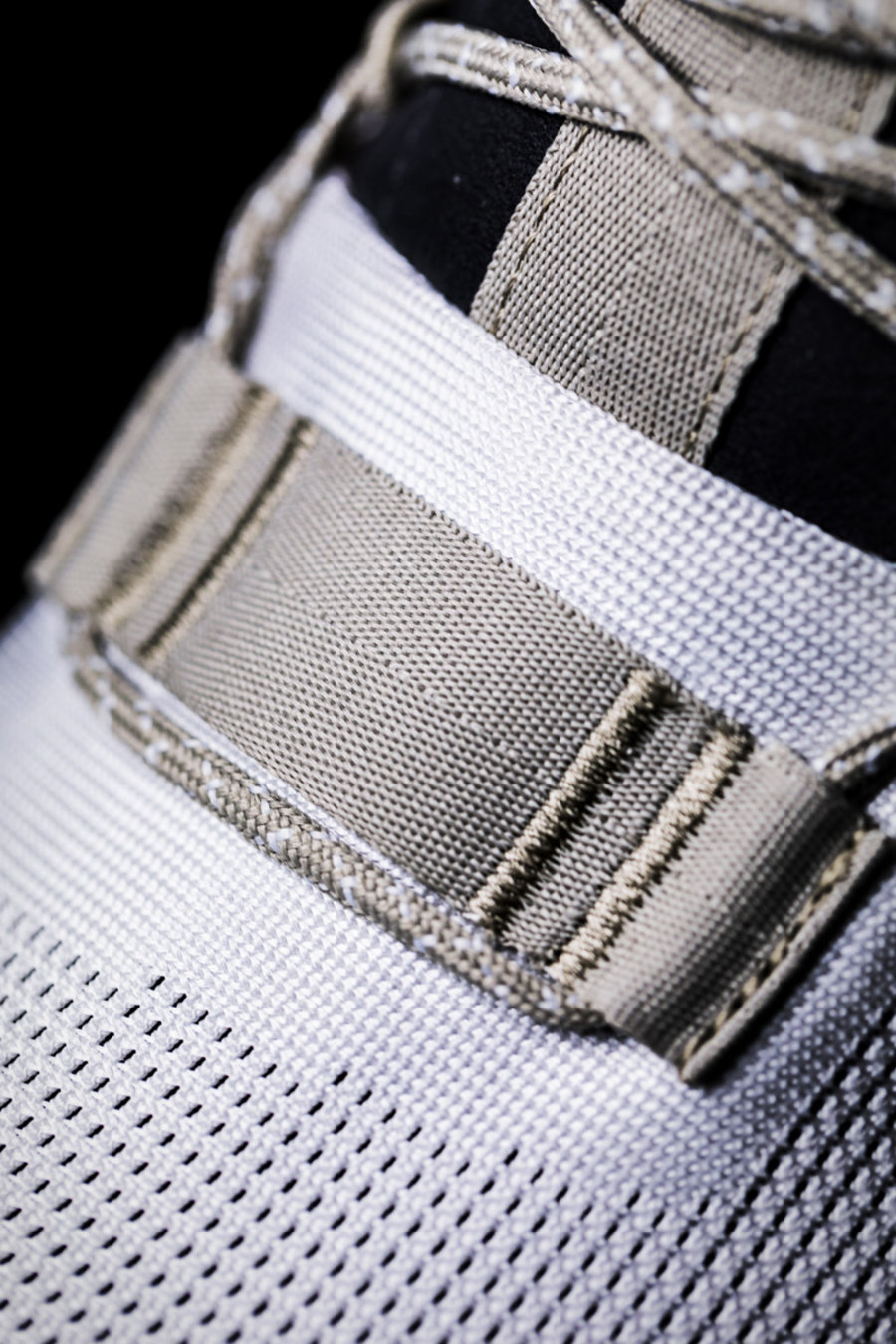 仅仅是鞋面就运用了麂皮、帆布、工程网面等丰富材质拼接打造。