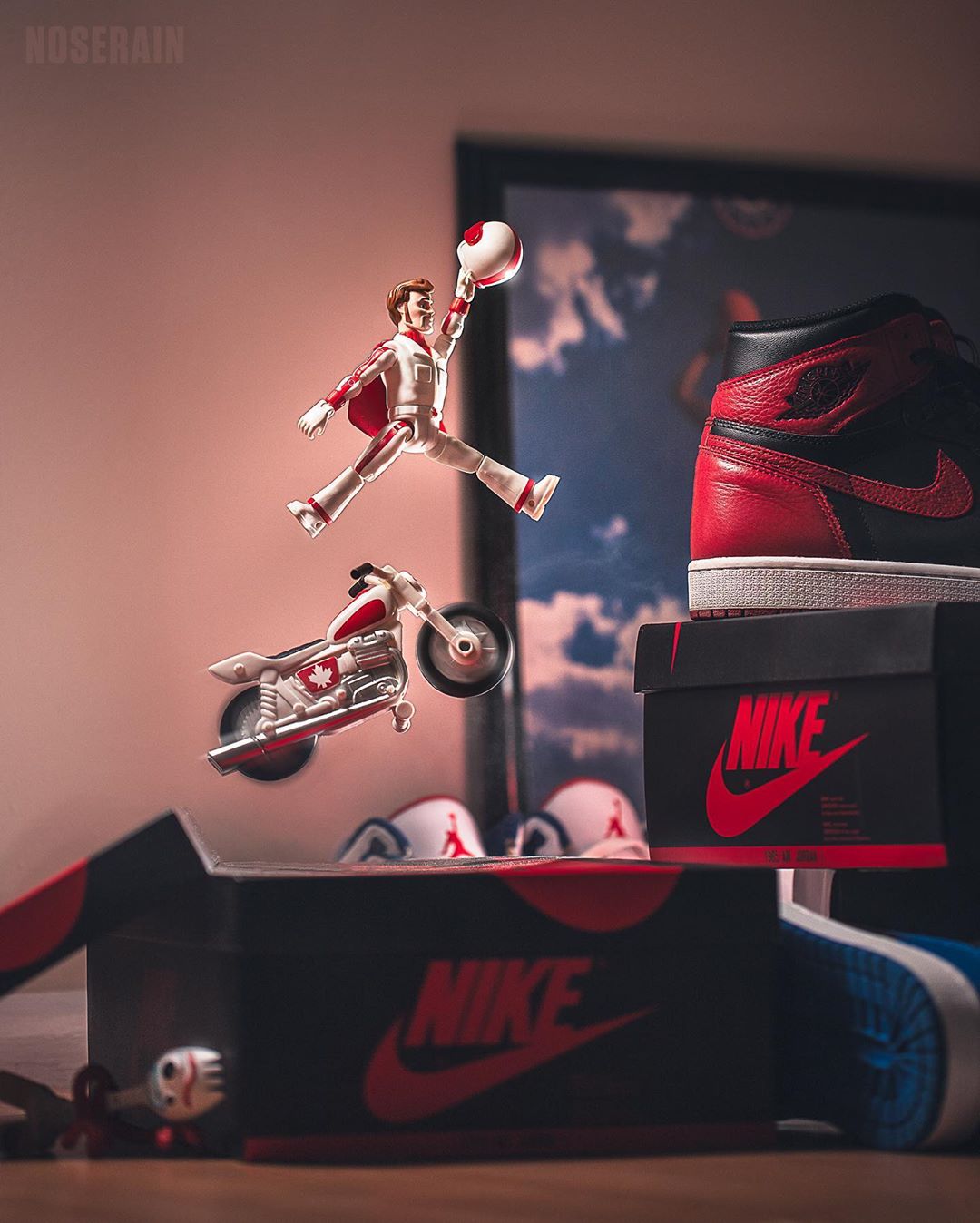 本来收藏这些玩具手办已经是个大工程,他还能为这些玩具注入灵魂,把每一个玩具都拍得栩栩如生,甚至让球鞋与玩具完美结合,绝对是个不折不扣的 sneakerhead。