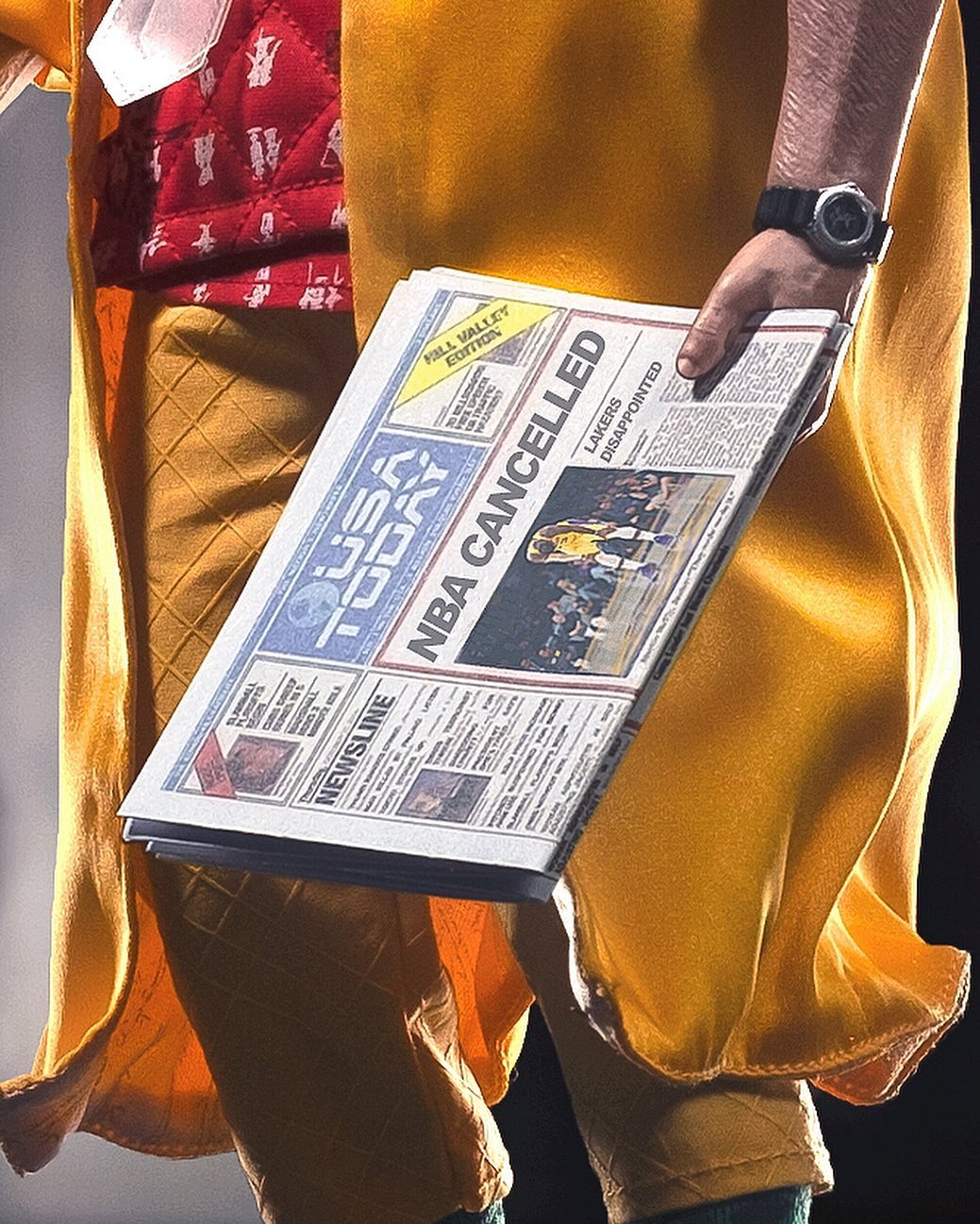 从这张穿着 Nike Air Mag 的詹姆斯,就能看出每张作品有多细腻,报纸上的小字都能看得一清二楚。