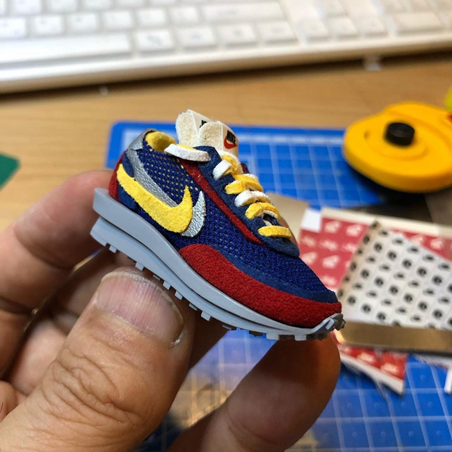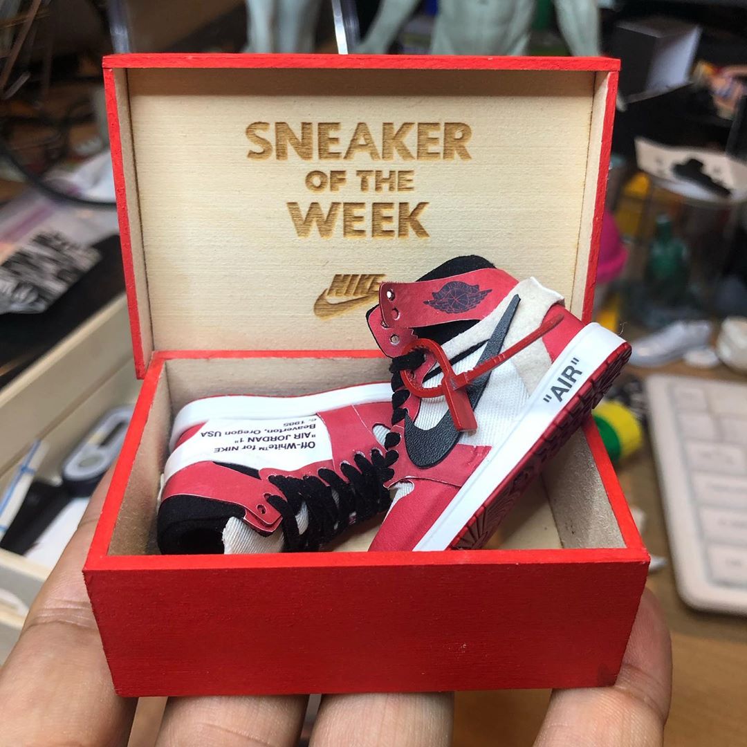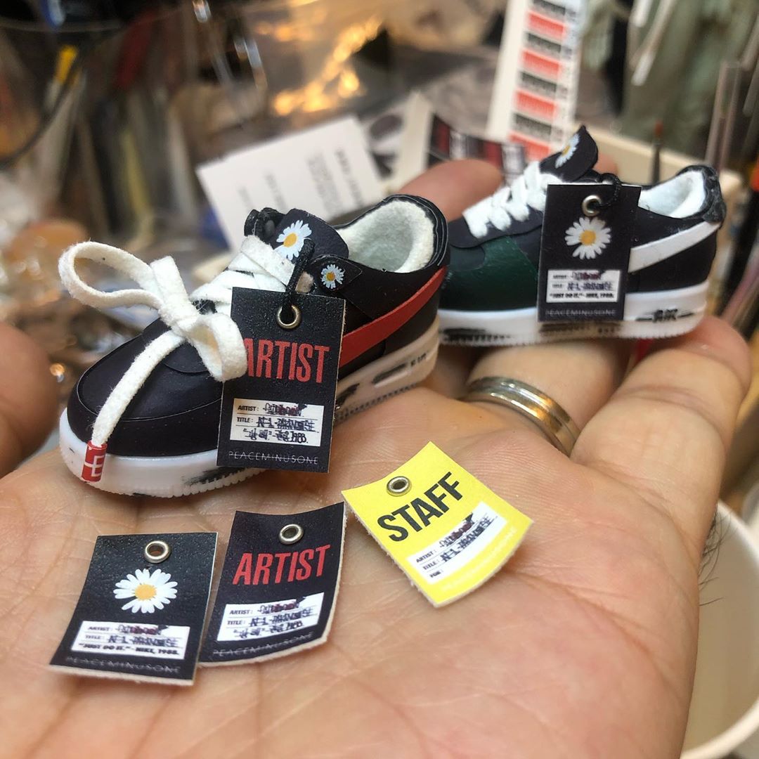 为了让每个潮流人偶都穿上配套的球鞋和服饰,coolrainlee 就都得自己亲手制作,他也热衷于制作各种热门球鞋的迷你模型。