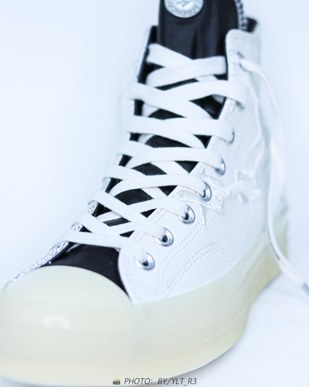 全新三方联名以经典的 Converse Chuck 70 为设计蓝本,皮革装扮的鞋身尽显奢华质感。