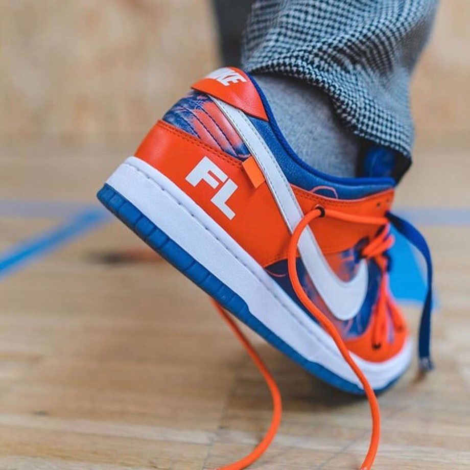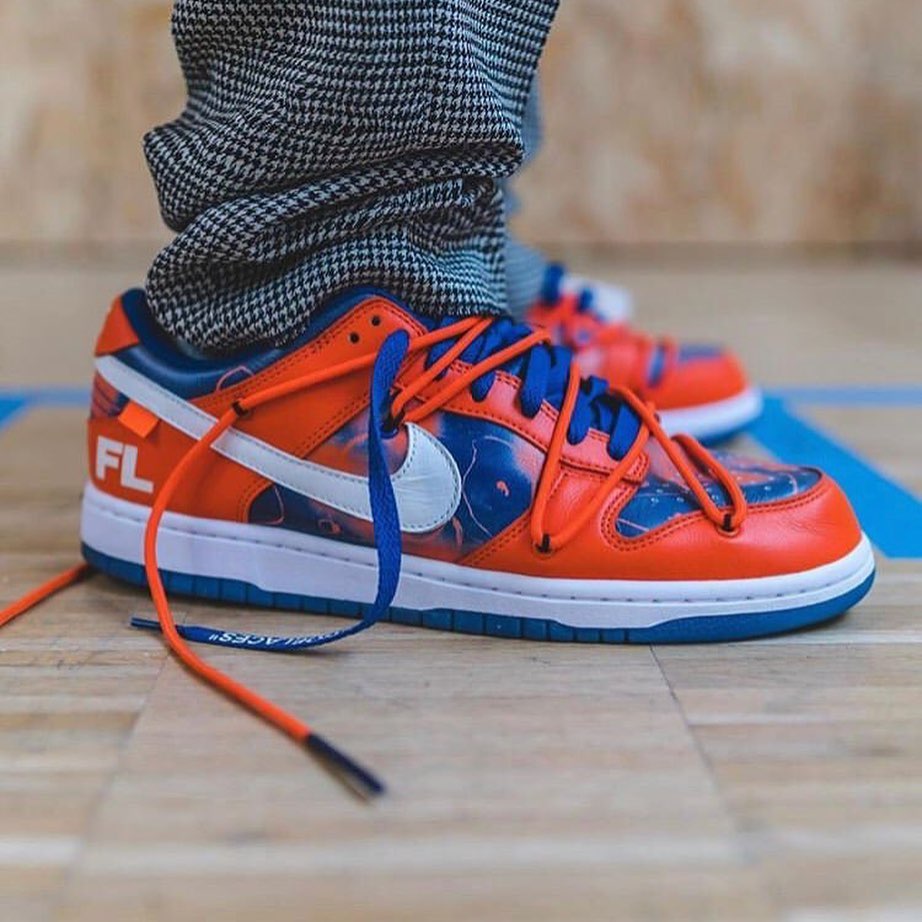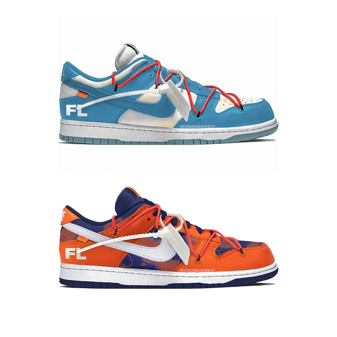 那就是携手街头涂鸦大师 Futura,打造的 OFF-WHITE x Futura x Nike Dunk Low “Bold Orange” & “Bright Blue” 两款配色。