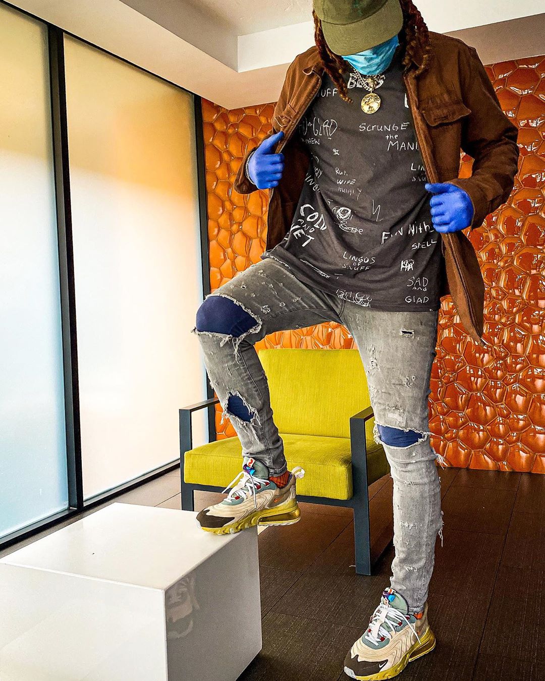 独特的色调,做旧的效果,让这双鞋的外观承袭了 TS 的一贯风格,上脚效果究竟如何呢?让我们来看看最新的穿搭展示。