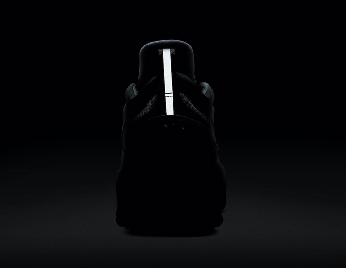 鞋面采用更具科幻感的浅灰为主调,鞋底橡胶部分则采用半透明红外线色搭配黑色示人。