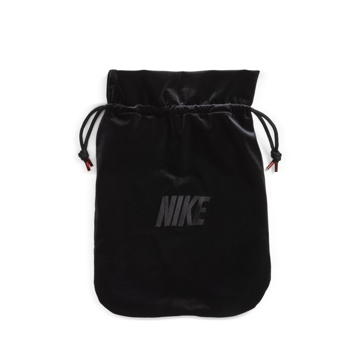 鞋身、鞋舌与金属鞋带扣都加入暗红色的 Swoosh 点缀,后跟还有暗红色的圆珠点缀,为这双鞋增添了几分妖异的气质,鞋款还附带一个丝绒鞋袋,规格堪比联名配色。