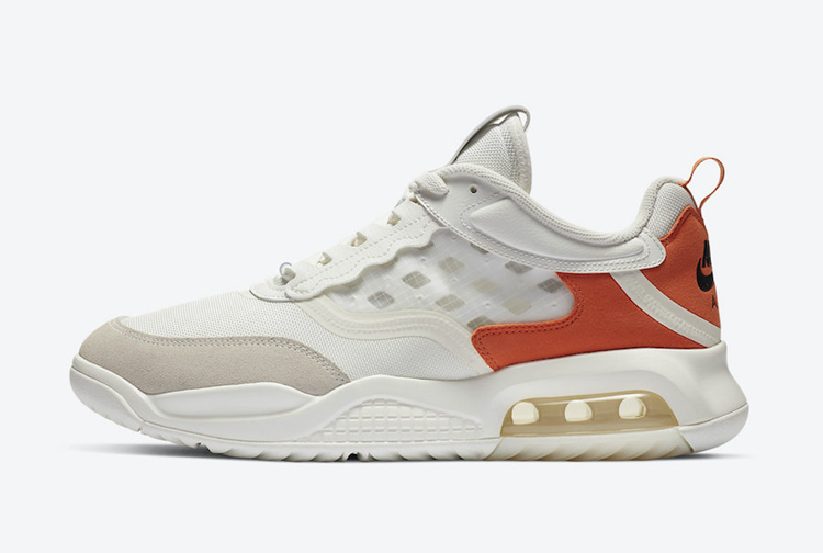鞋头采用米白色麂皮材质装扮,鞋带以及鞋舌位置点缀 JUMPMAN 以及 MAX-200 字样,彰显鞋款身份。