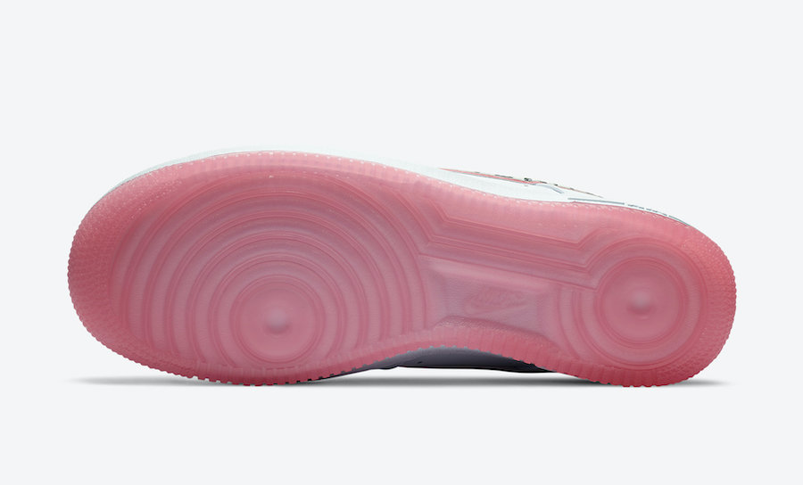 整体以大面积的白色为主调,左右脚却是分别加入淡蓝与淡粉色的鸳鸯设计,晶莹剔透的水晶外底更添清爽甜美气息。