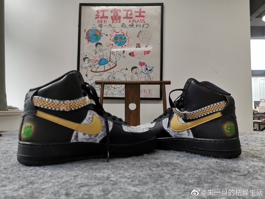 其实朱一旦的短视频中常常出现定制球鞋的身影,最夸张的是他还把劳力士挂在了 Air Force 1。