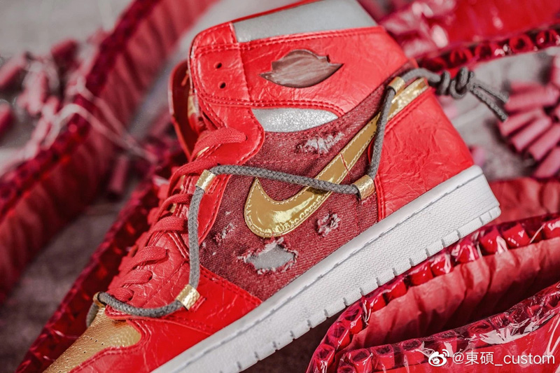 在朱一旦的新视频中,还有一双酷似钢铁侠装扮的 Air Jordan 1 常常出镜。