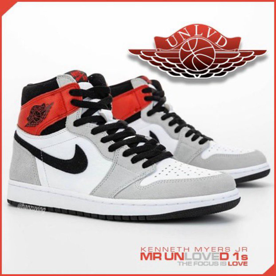 这双灰白配色的 Air Jordan 1 气质十分高贵,可以看出鞋面材质采用灰色翻毛皮打造,侧身搭配黑色 Swoosh Logo,同时鞋帮采用红色装扮,表现相当抢眼。