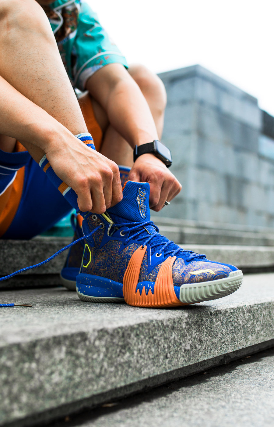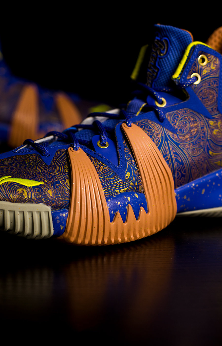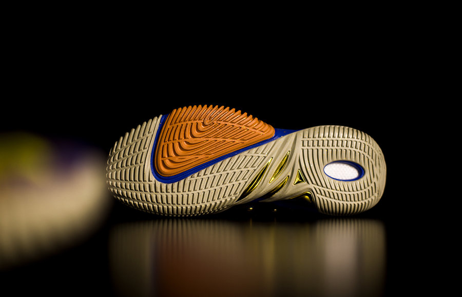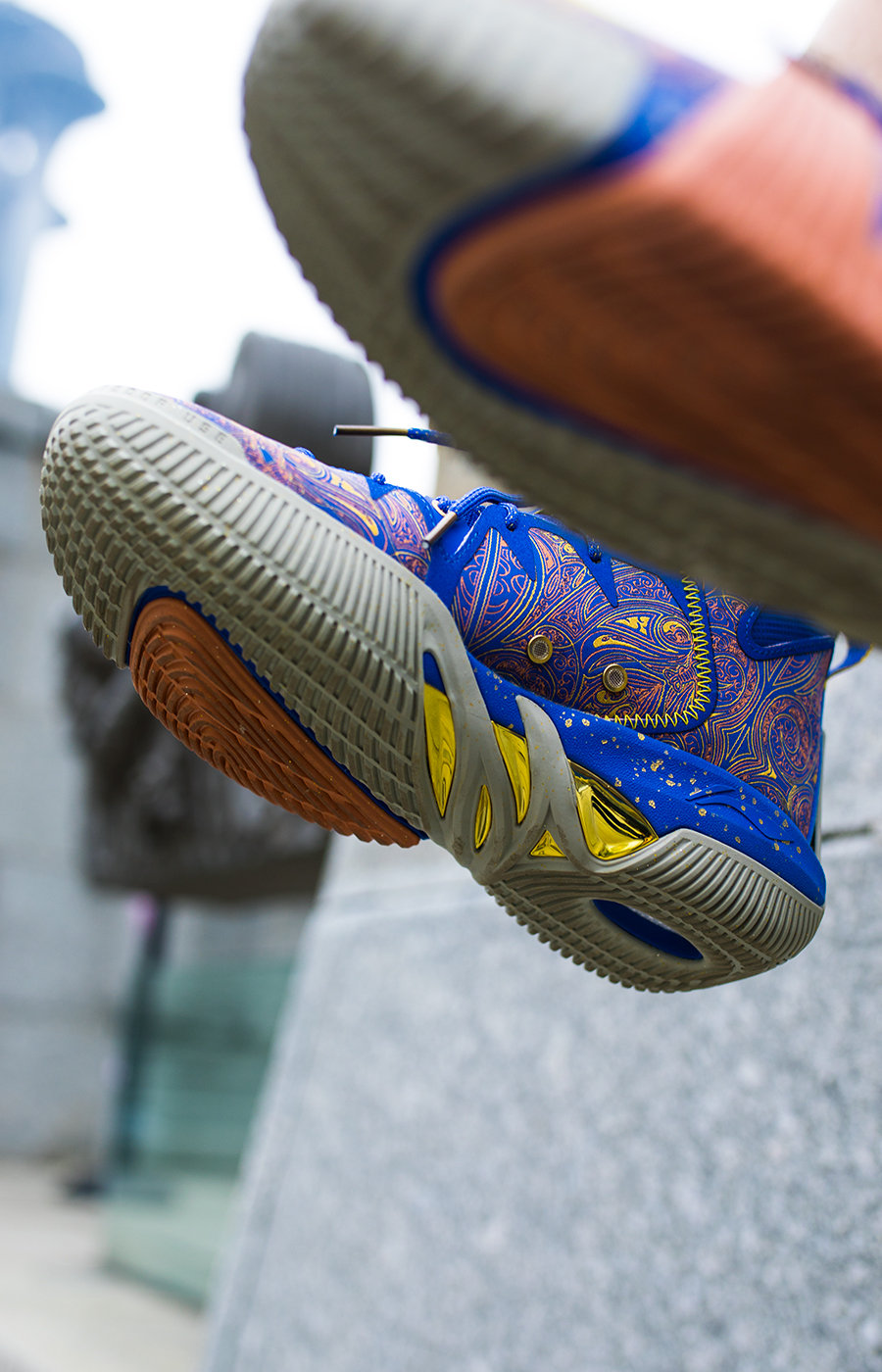 单以颜值来看,沉稳的蓝色搭配华丽的金色暗纹,加之醒目的橙色与金粉中底,上脚可谓辨识度超高,十分醒目。