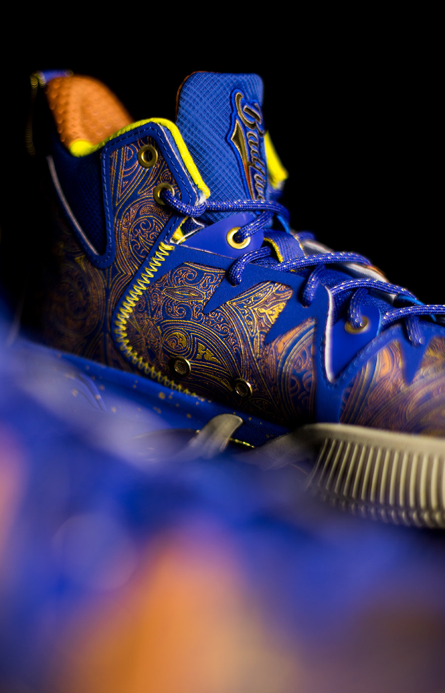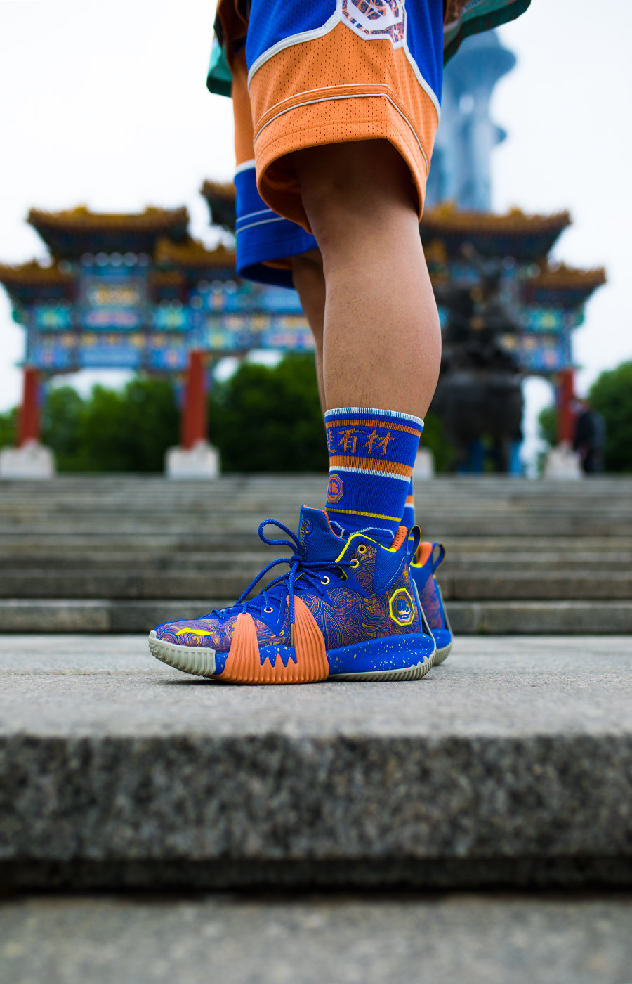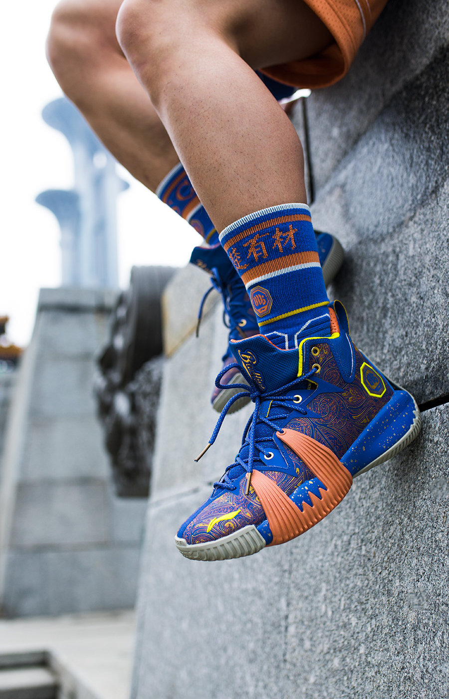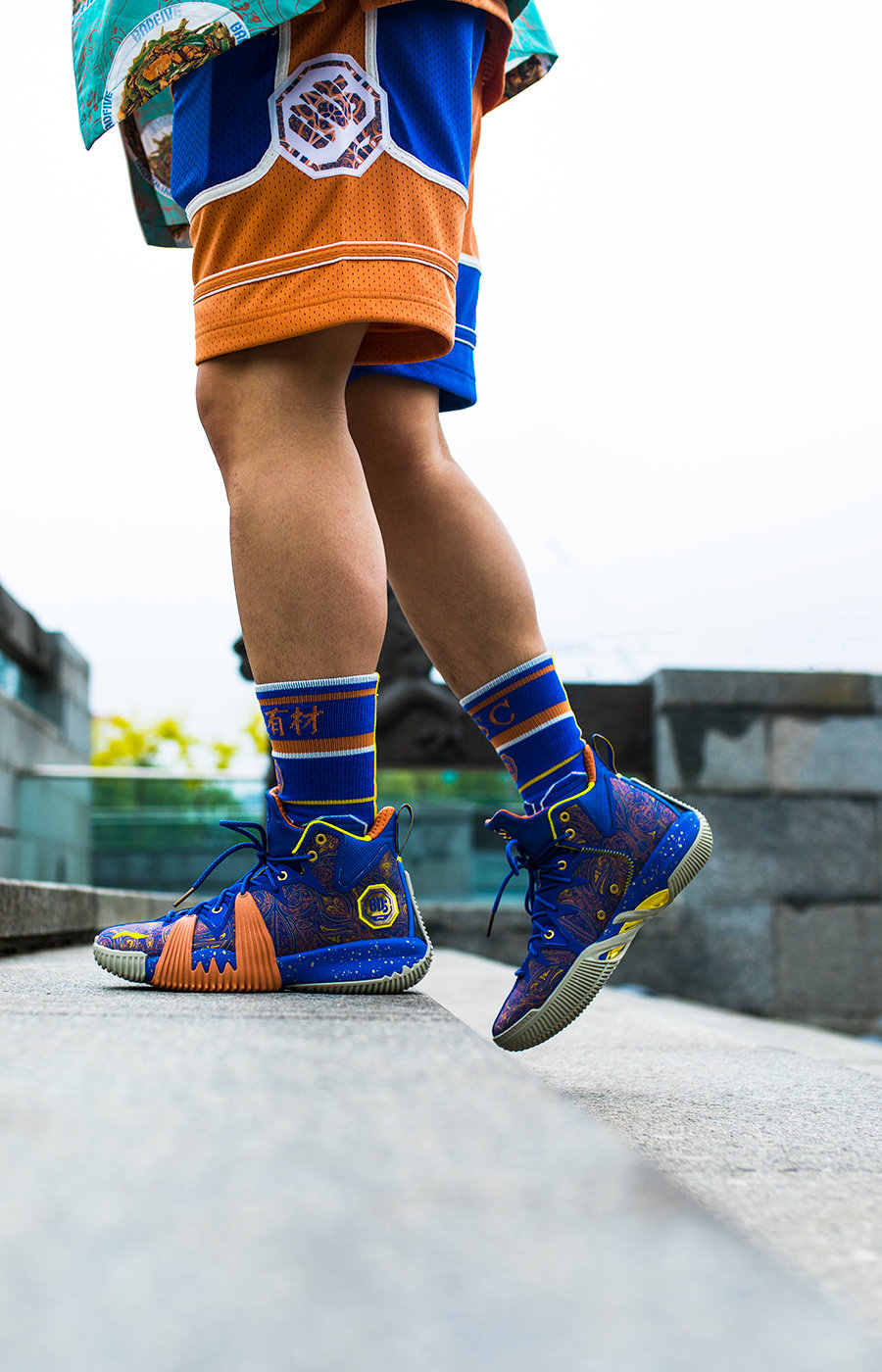 单以颜值来看,沉稳的蓝色搭配华丽的金色暗纹,加之醒目的橙色与金粉中底,上脚可谓辨识度超高,十分醒目。