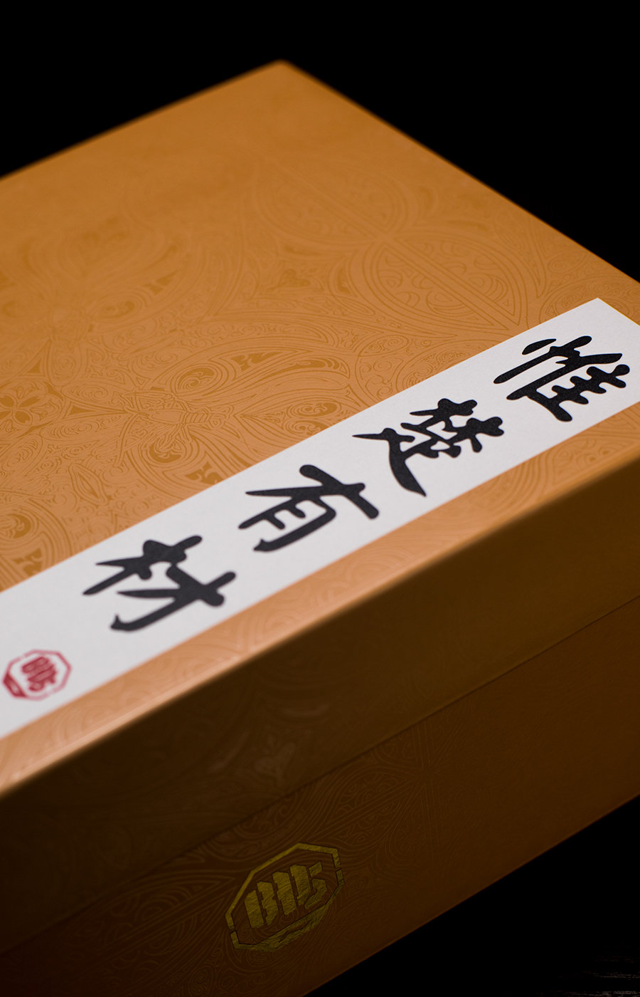 鞋盒与套装造型相似,竖字 “惟楚有才” 呈现在棕色鞋盒上。