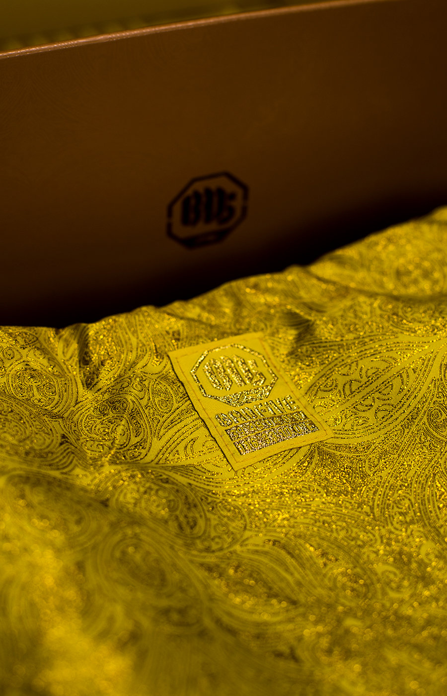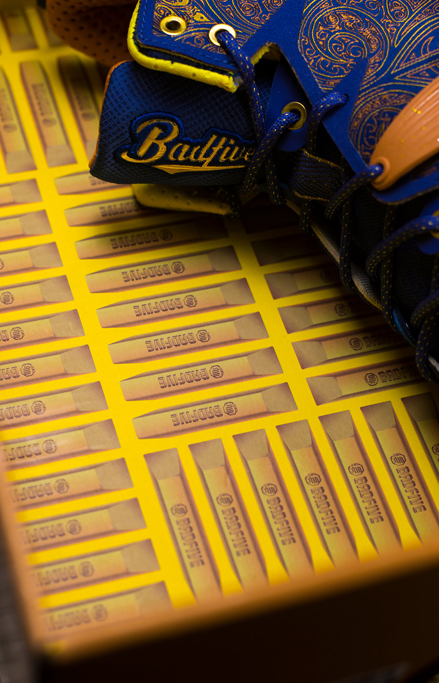 加之,后跟鞋帮还带有烫金 BADFIVE Logo,中底支撑还带有亮金装饰,可谓是方方面面都呈现出此次设计的华丽与尊贵。