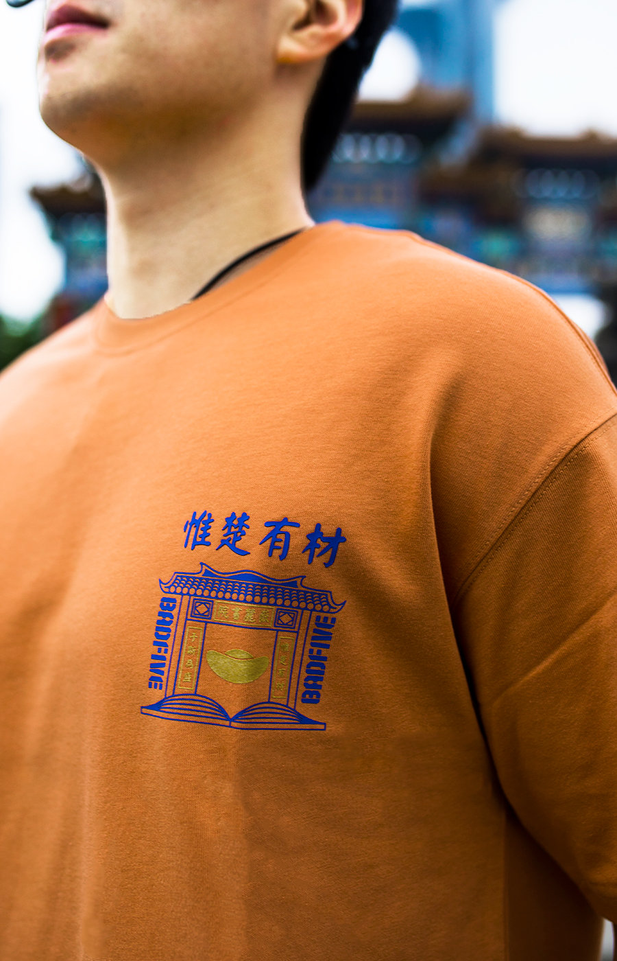 在领口和胸口前还带有 BADFIVE 及 “惟楚有才” 的刺绣装饰,细节设计非常考究。
