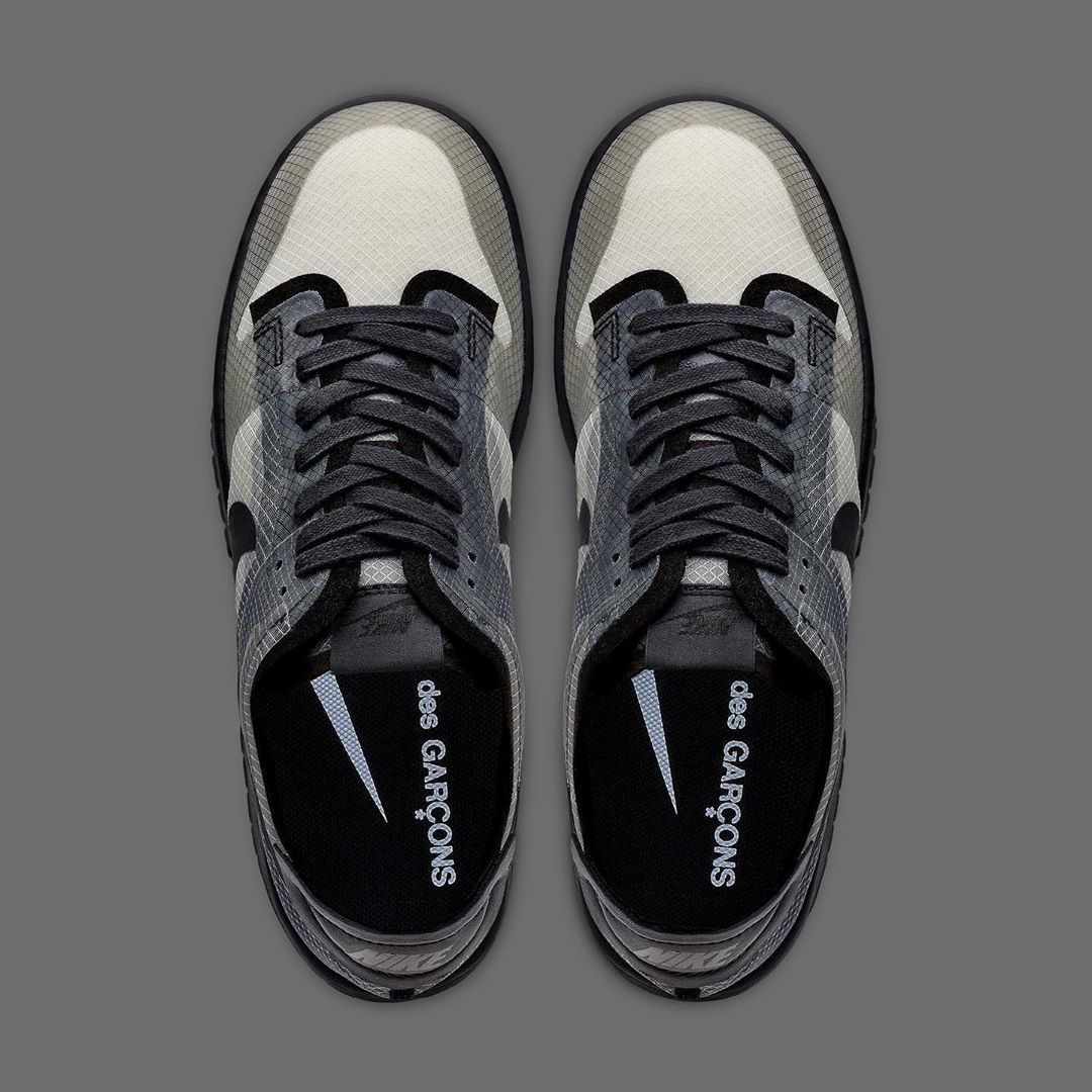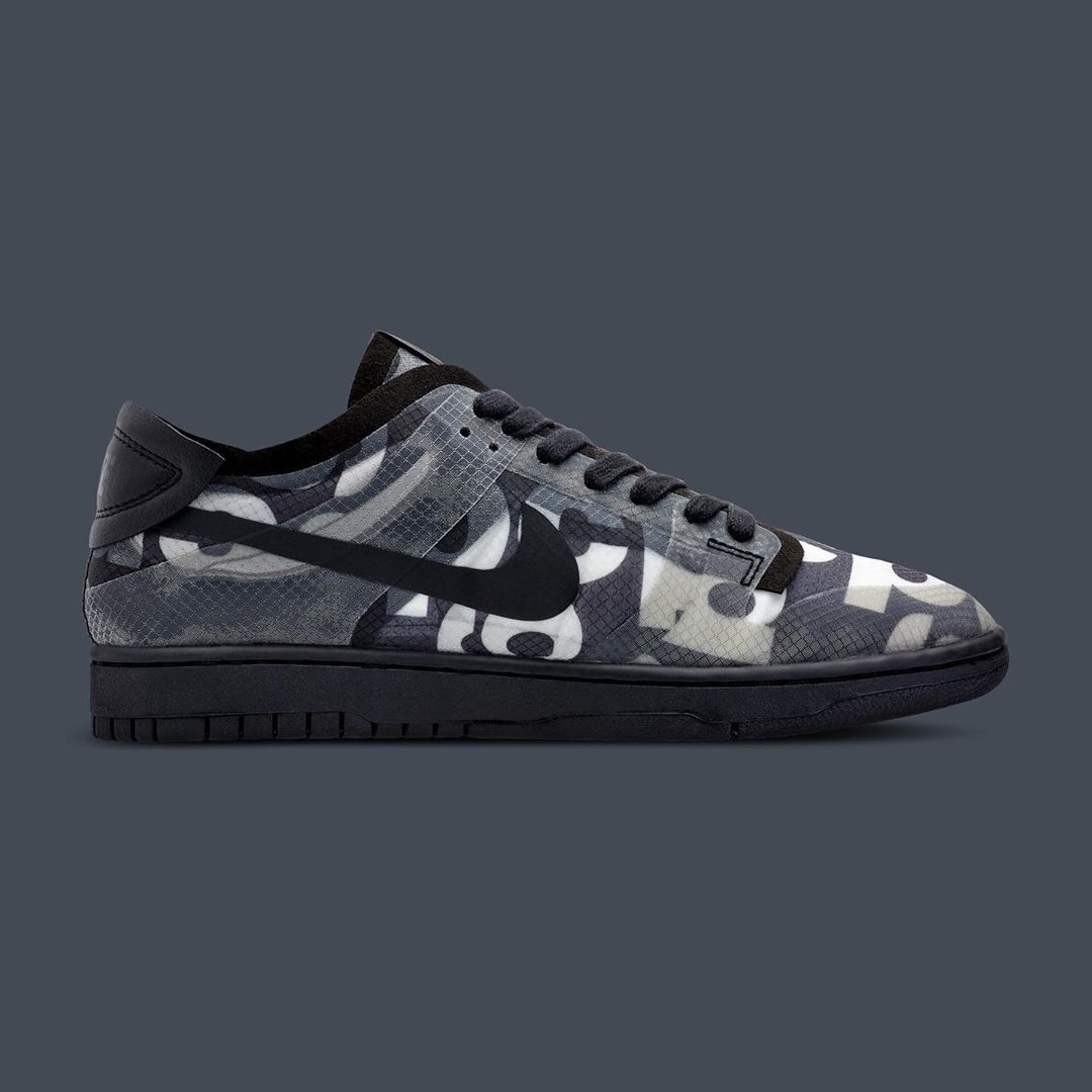 不仅联名的对象往往都是球鞋大牌,更重要的是 CdG 常常能以不同品牌当季最火的球鞋做文章,就像去年的 Air Jordan 1 与今年的 Dunk Low 一般!