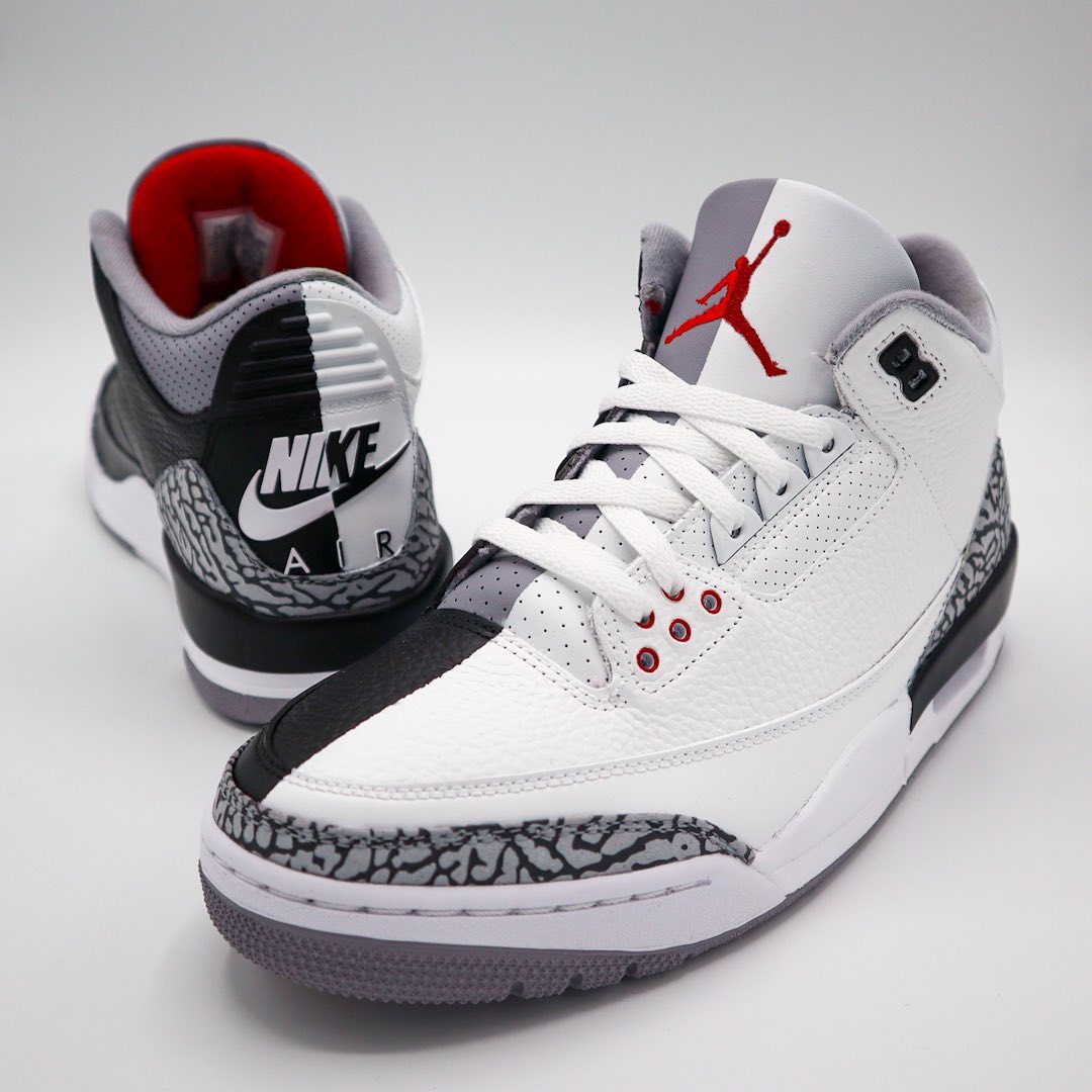 他将 Air Jordan 3 最经典的黑水泥与白水泥配色合二为一,而他制作这双鞋的方法也非常简单,并不是将两双鞋剪裁再拼接,而是相对简单的画出阴阳鞋面的效果,这种方法最大的优点就是让整双鞋看起来非常自然。