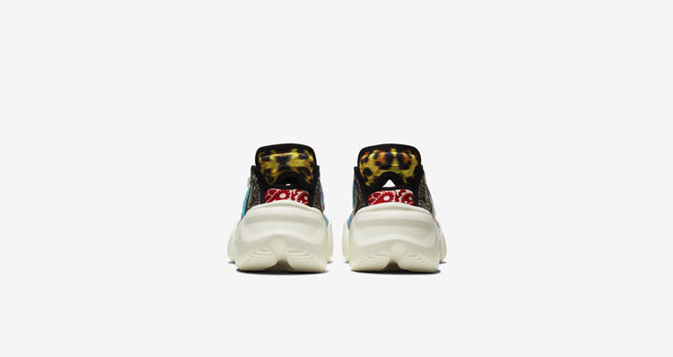 整双鞋的设计元素极其丰富,从鞋头到后跟,每一个模块都采用风格的印花拼接。