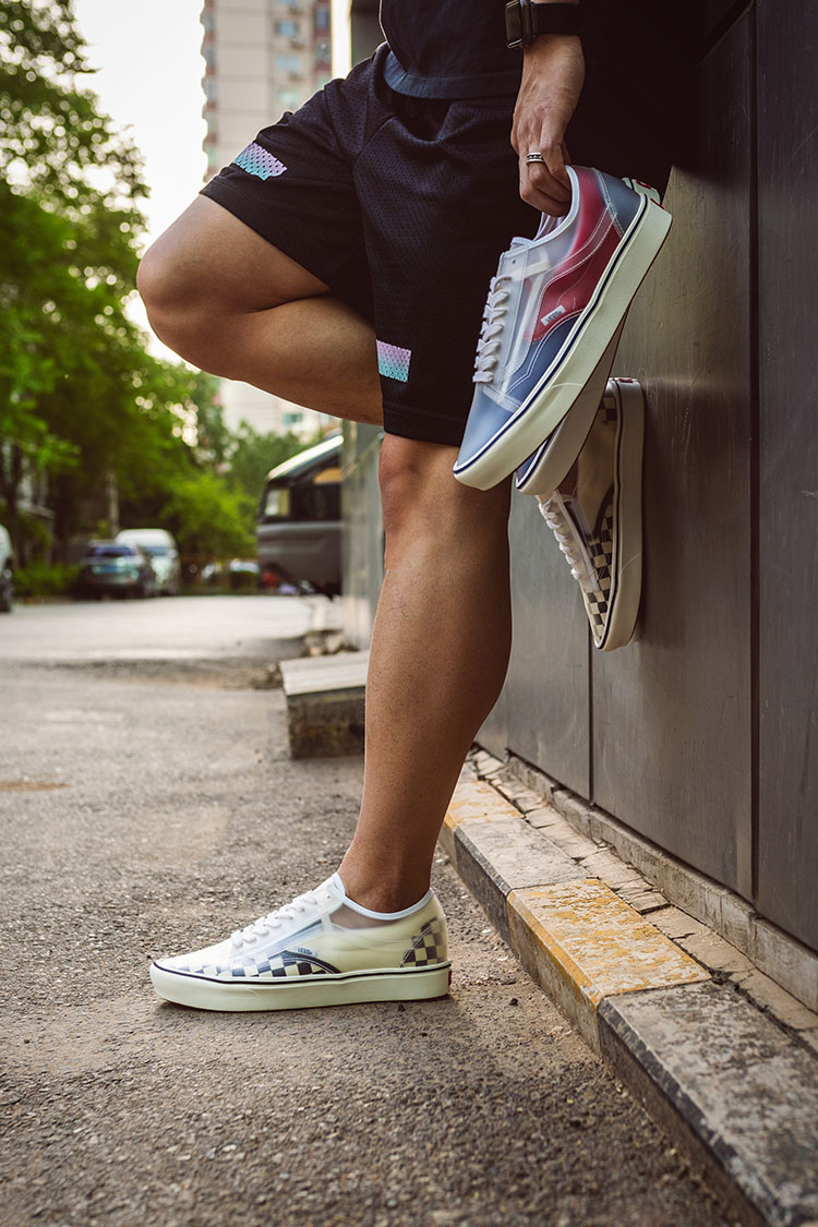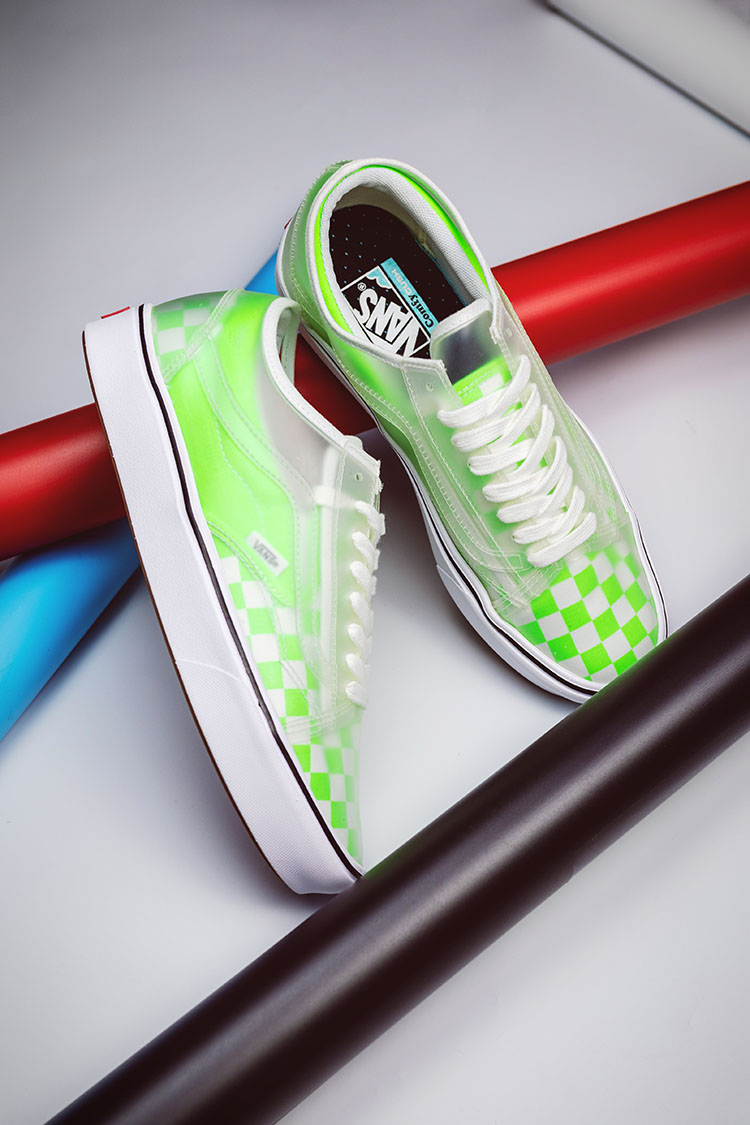 内层 Slip-On 鞋面采用经典棋盘格造型呈现,再加上外层半透明的 Old Skool 鞋面,棋盘格若隐若现,忍不住想要多看一眼。