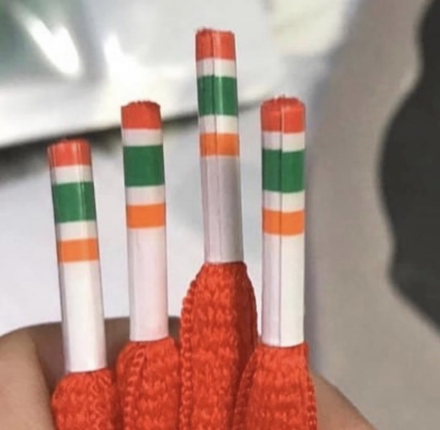 鞋身配色移植 7-11 标志内的红、橙、绿三色,构成鞋头、侧身、后跟三个对比醒目的色块。