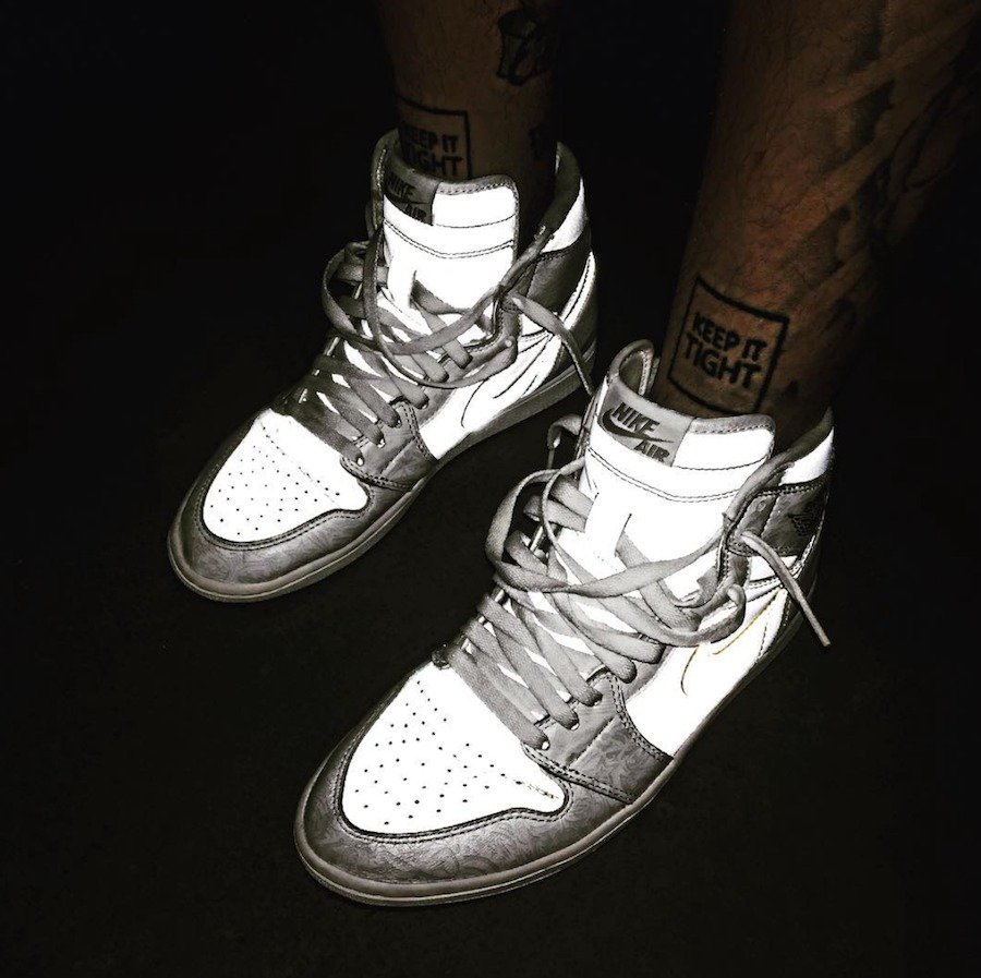 其二,这双鞋是全鞋身 3M 反光材质打造,市售版本仅为 Swoosh Logo 反光。