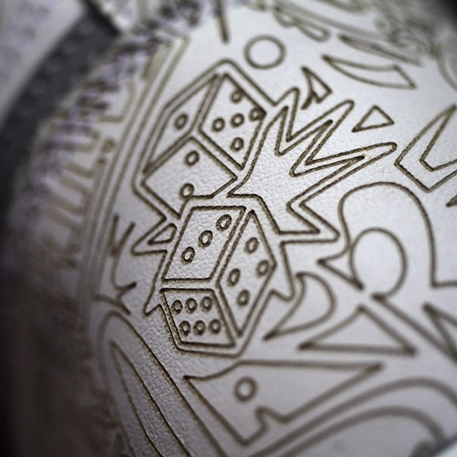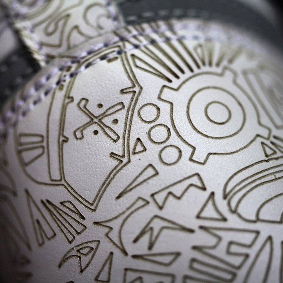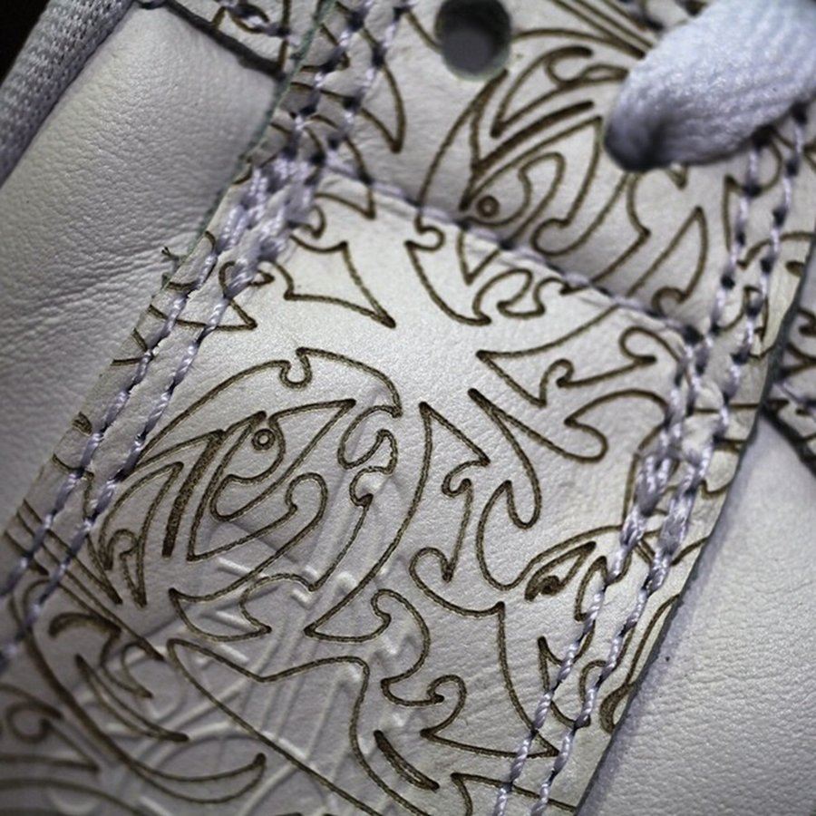 其一,这双 Sample 的花纹细节更加丰富,鞋身的框架几乎都是由细节丰富的图腾构成。