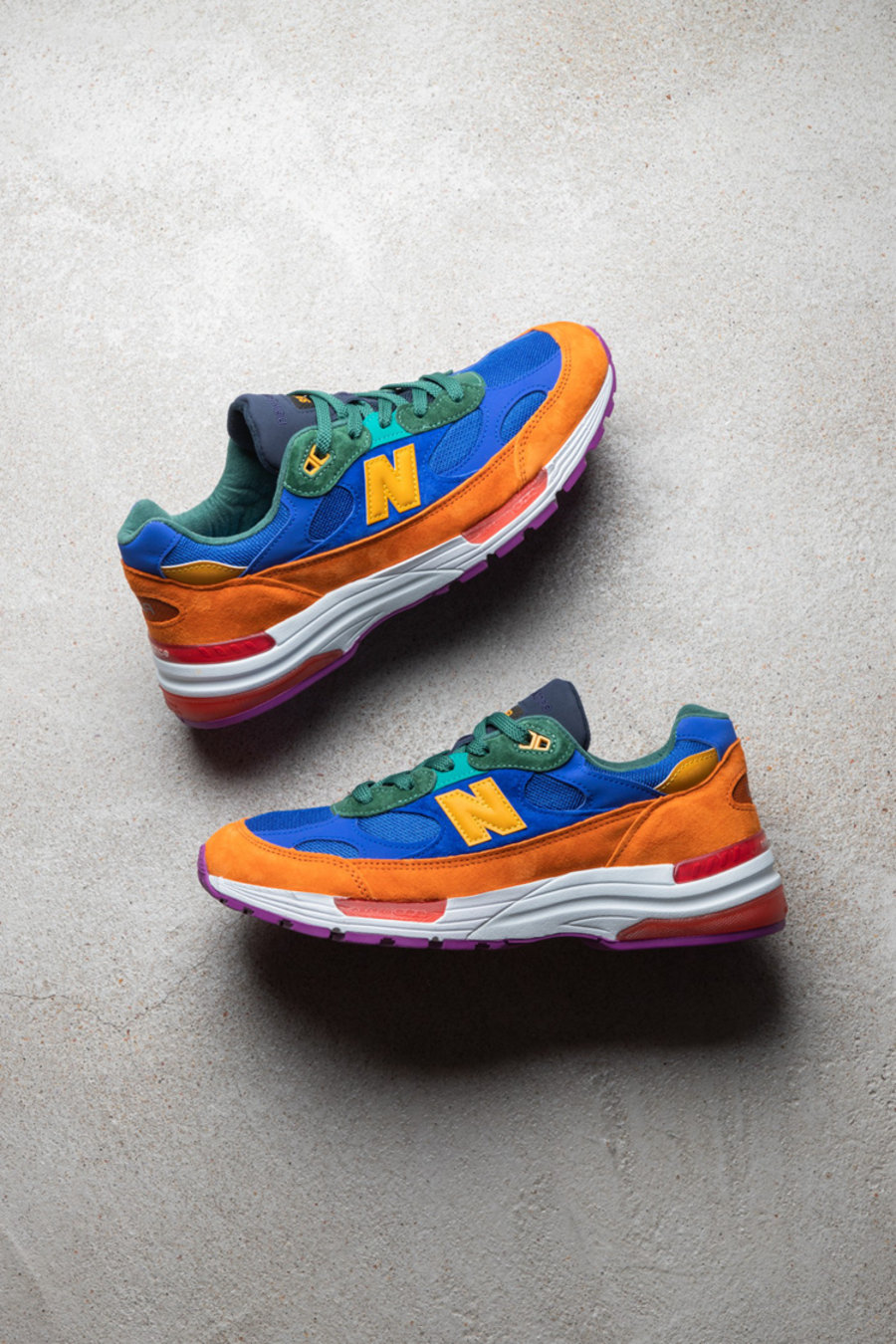 而近日知名潮流电商即将补货 New Balance 992 系列鞋款,除了已推出的三款配色之外,还额外追加一款彩色风格的配色。