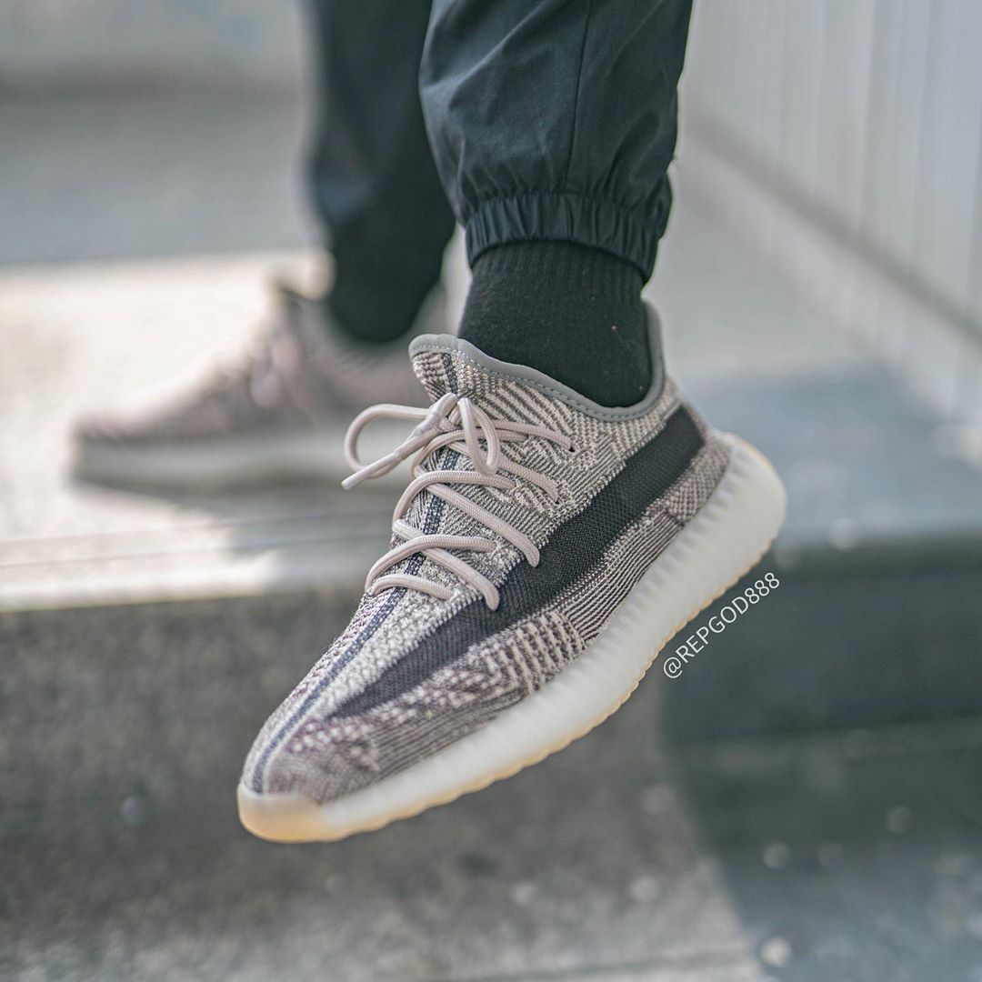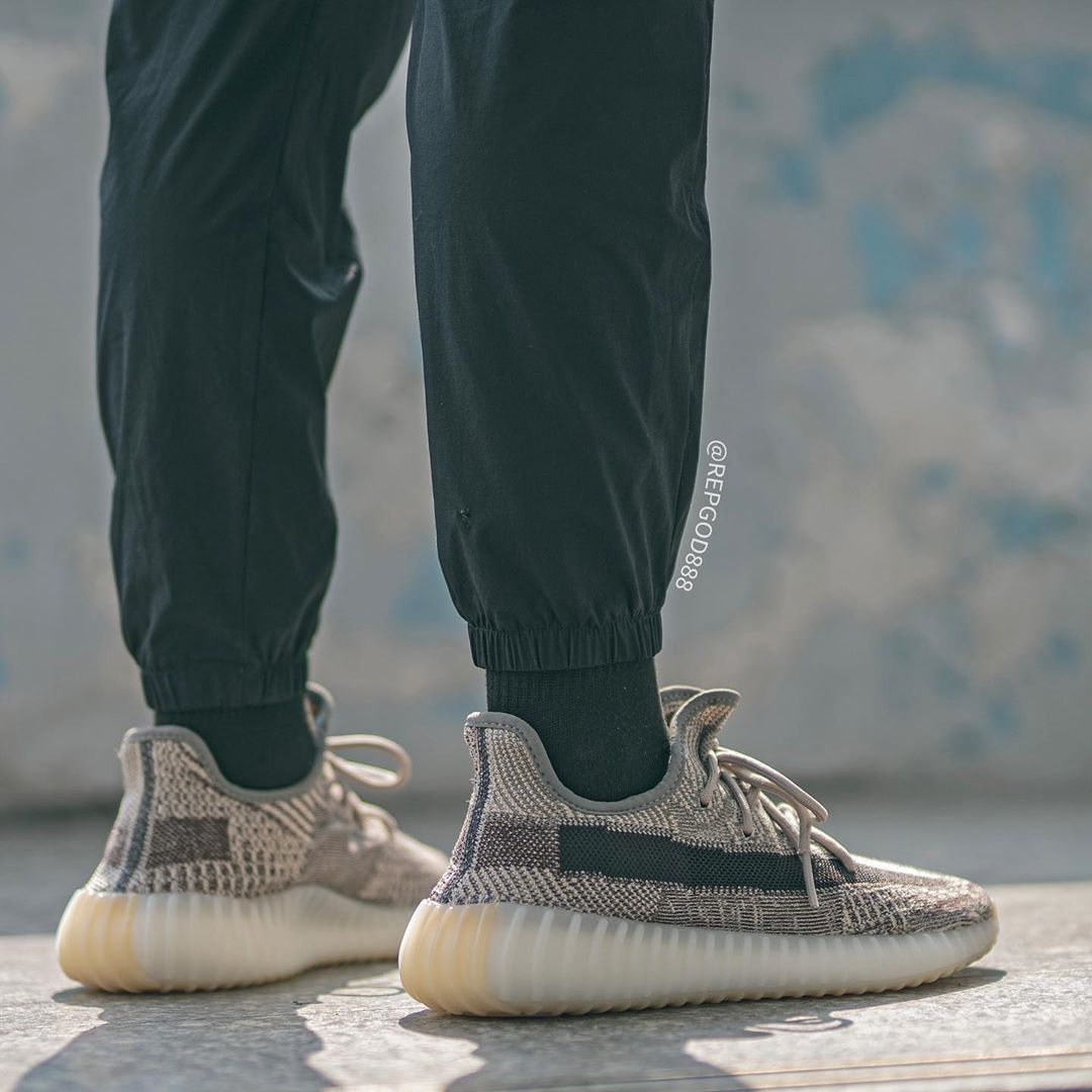 已于此前多次曝光的黑侧透 Yeezy Boost 350 V2 “Zyon”,近日又由球鞋曝料账号带来了全新实物细节及上脚图。